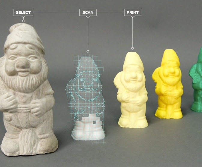 The register: The Digitizer works by placing an object on a spinning platform, scanning it using a combination of lasers and cameras, and then saving the collected data into a file format that's usable by 3D printing systems. MakerBot says the scanner can create a "watertight" digital model of an object - meaning one with no holes, cracks, or missing features, such that "inside" and "outside" the object are clearly defined - in as little as three minutes. |