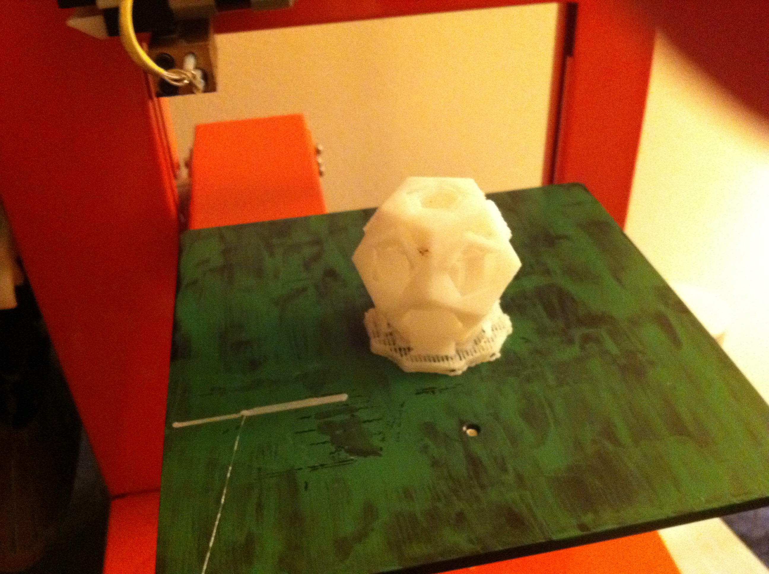 Photos below by Elizabeth Slavkovsky: It is an UP! Plus 3D Printer in Juicy Orange by PP3DP bought through [x]object Inc. The package UP! Start Plus included material and tools. About the designs: the Dodecahedron came from here A Sierpinski Tetrahedron came from here |