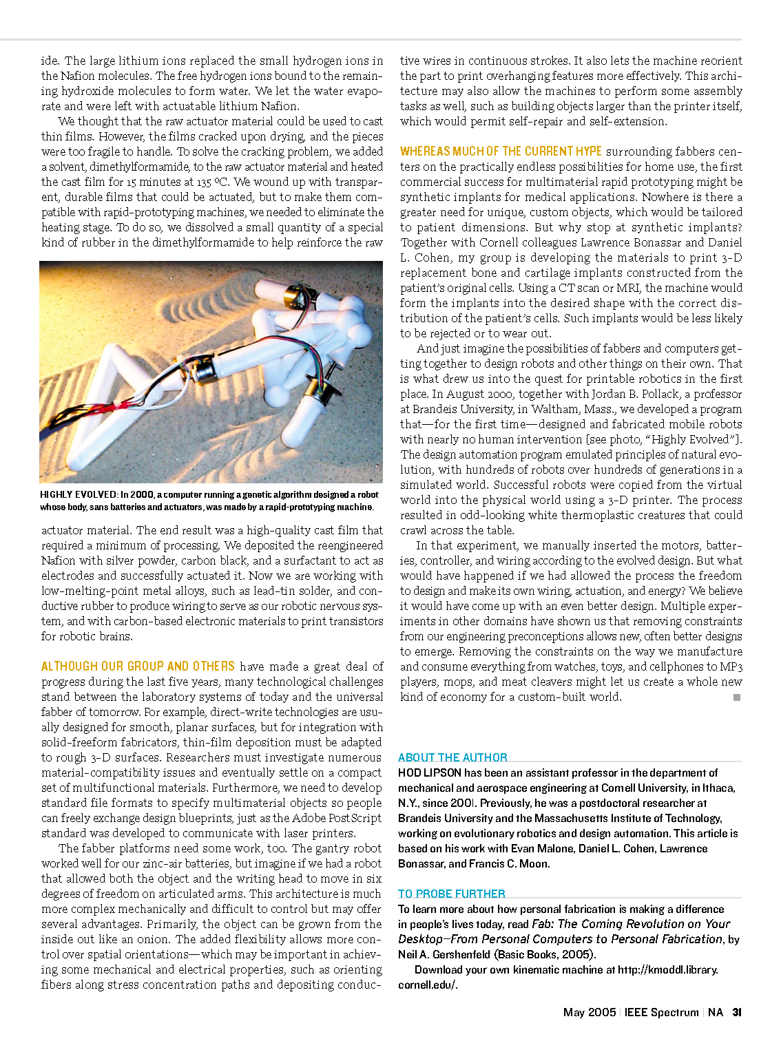 IEEE Spectrum 2005: Article by Hod Lipson