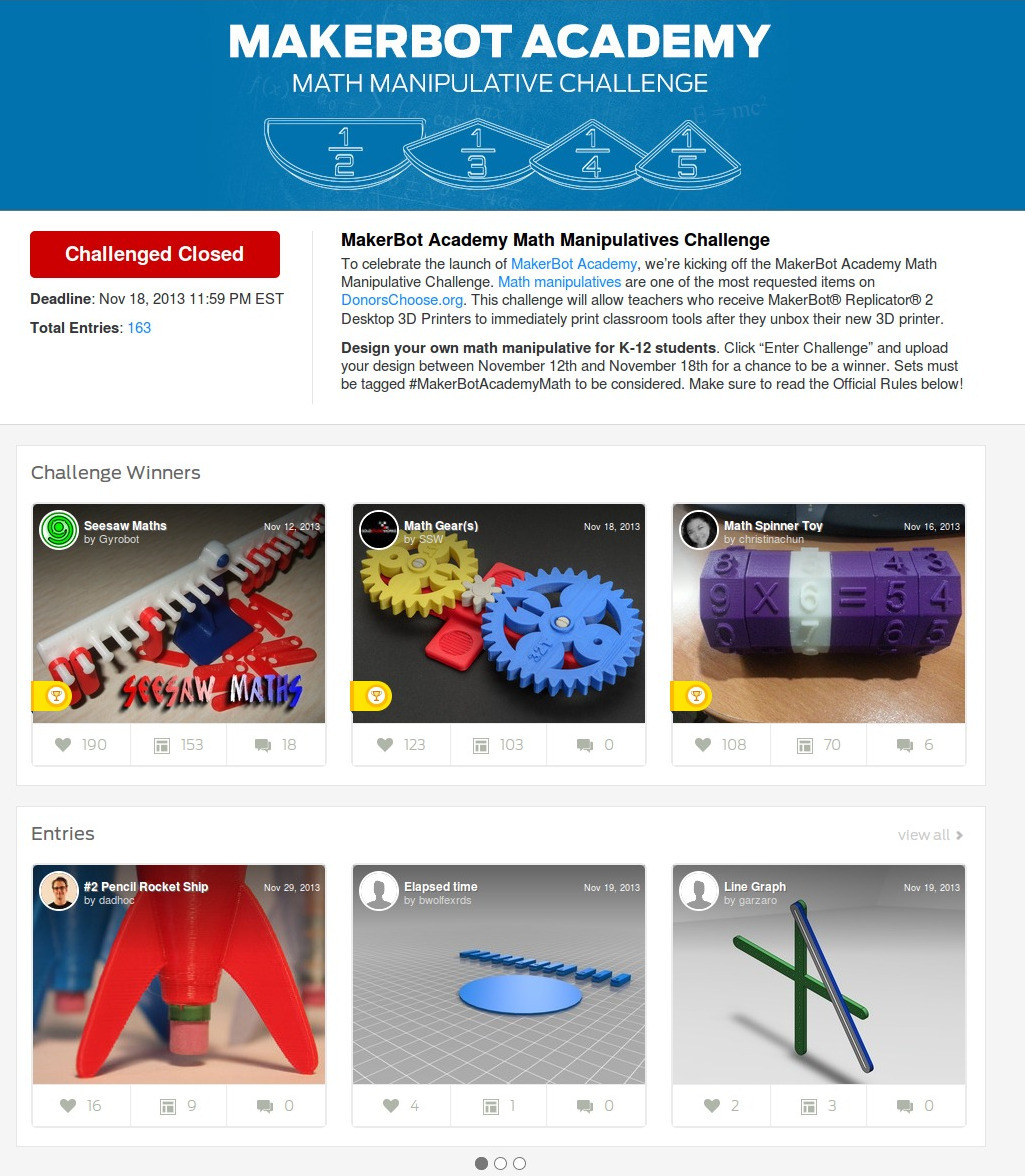 a winner. Sets must be tagged #MakerBotAcademyMath to be considered. Make