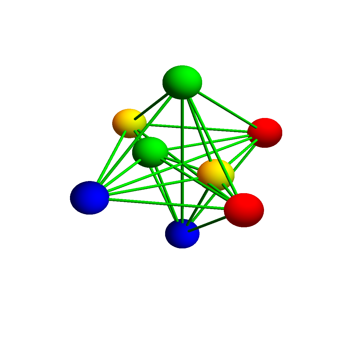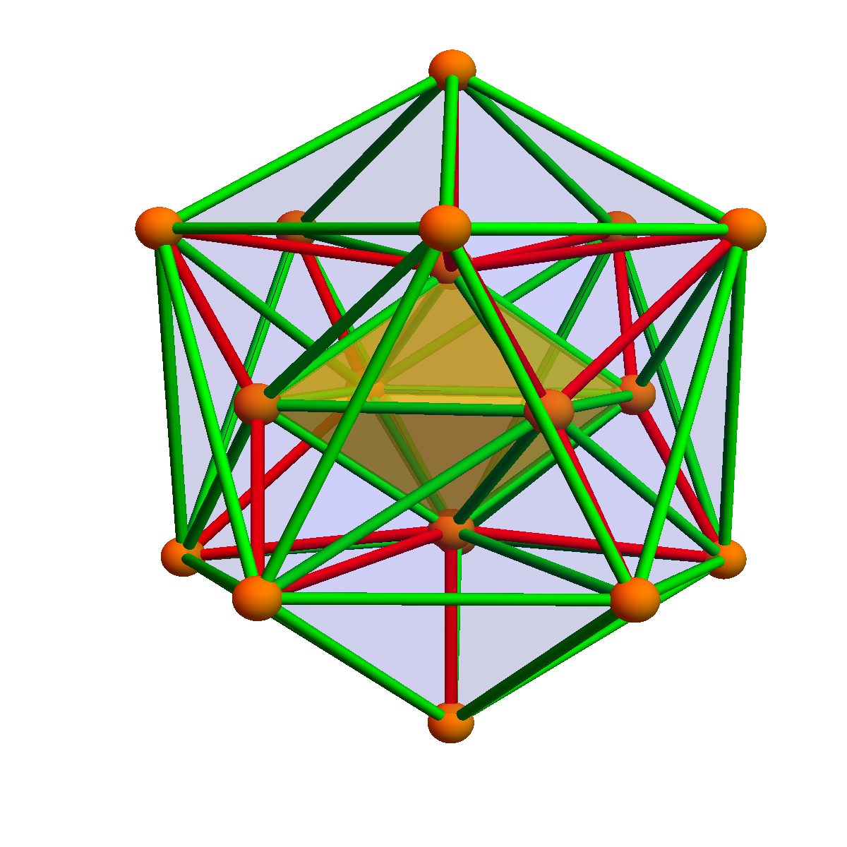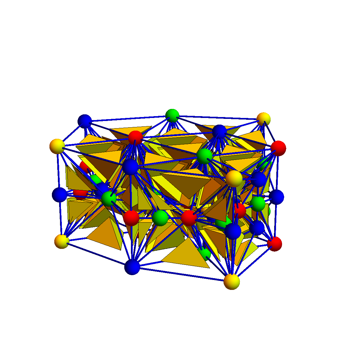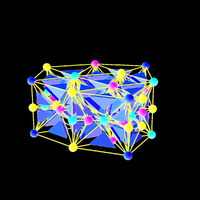 Its dual is the tesseract. It can be colored with 4 colors which is the minimal number of colors for three dimensional spheres. We believe that any 3-sphere can be colored with 4 or 5 colors. |