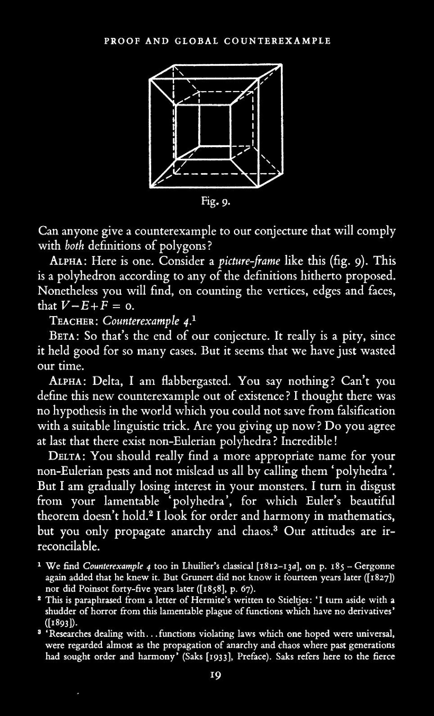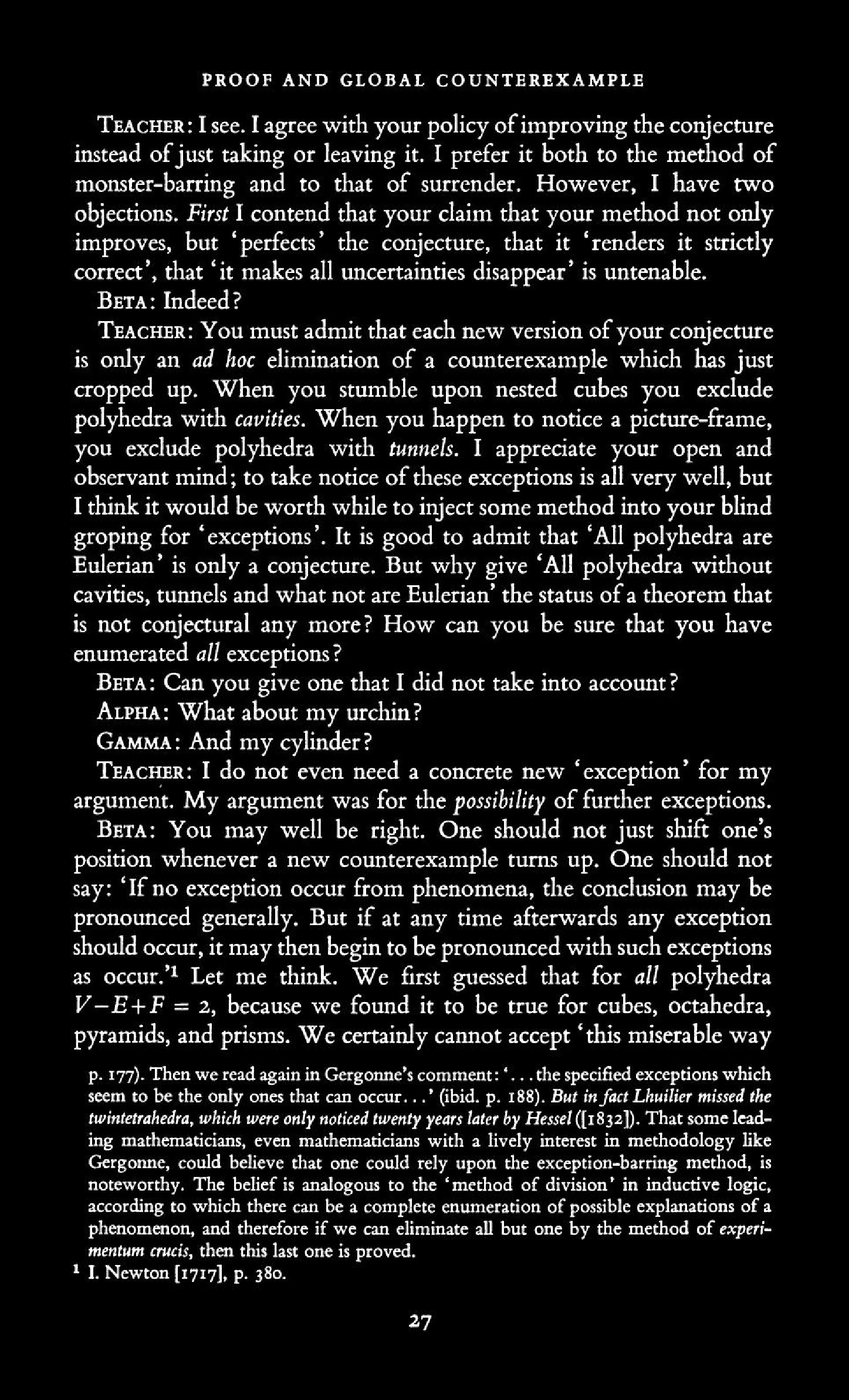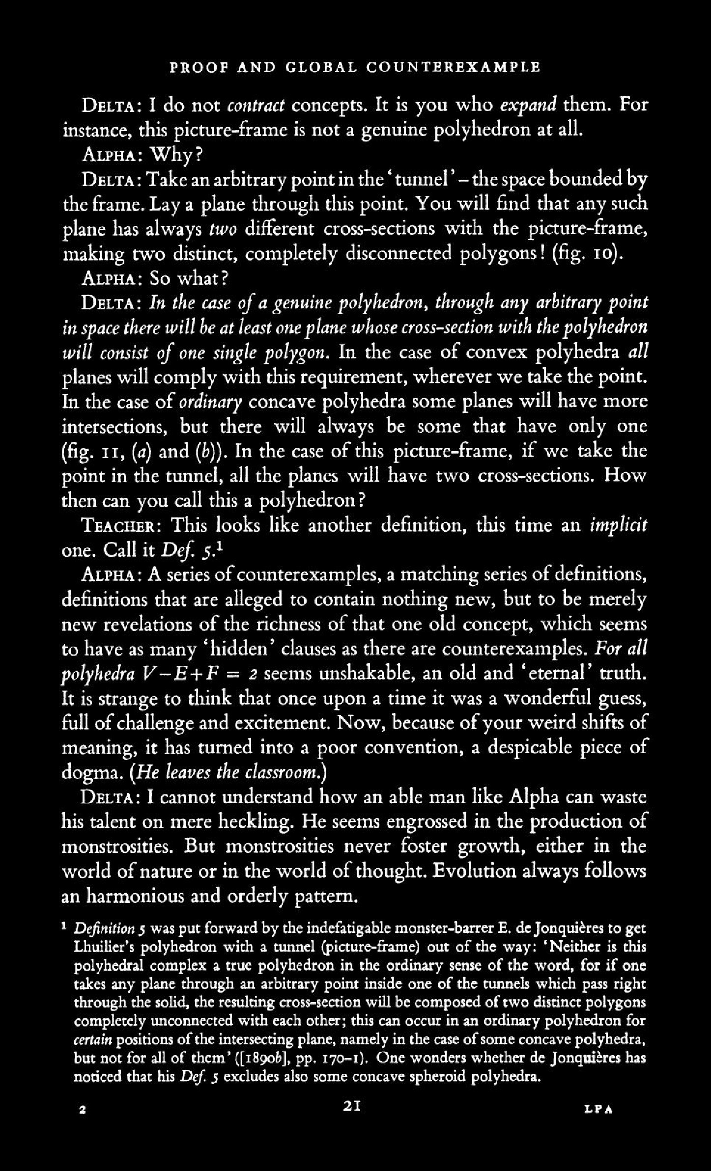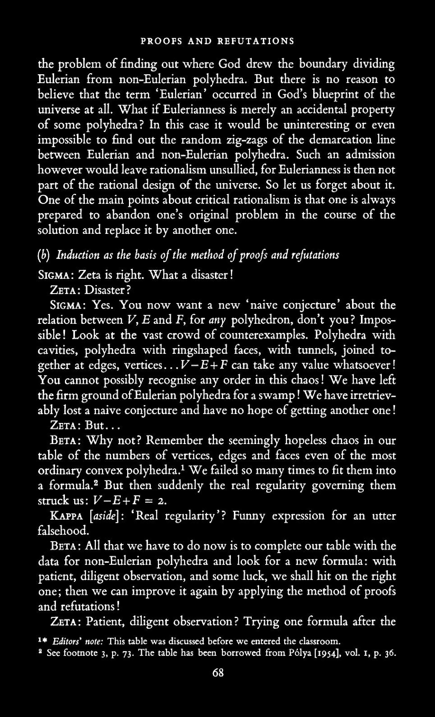 from Imre Lakatos: Proofs and Refutations, The Logic of Mathematical Disovery