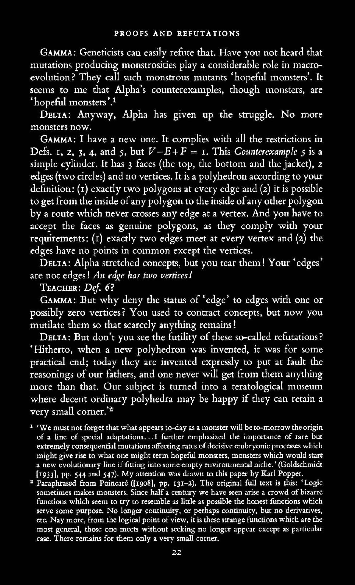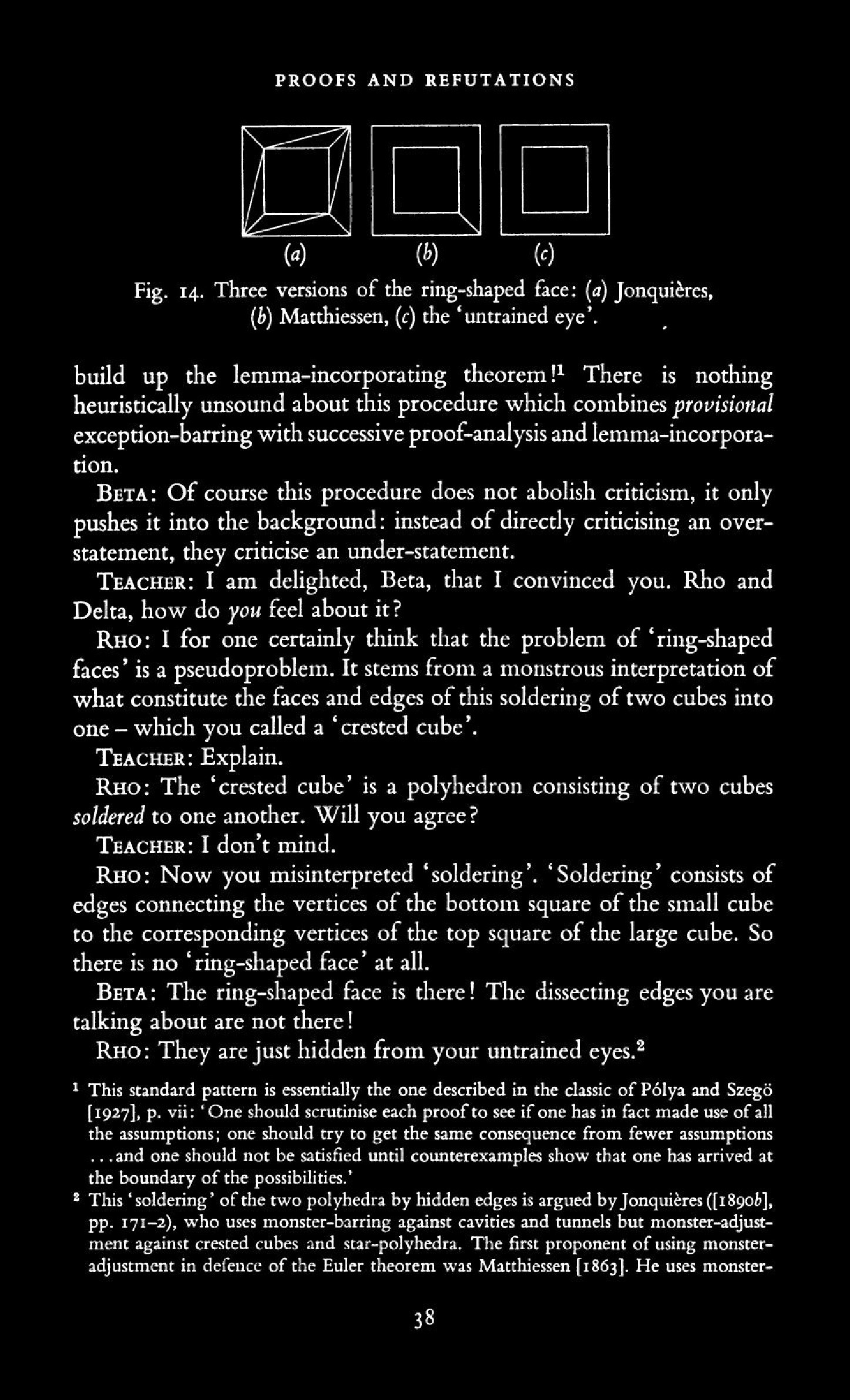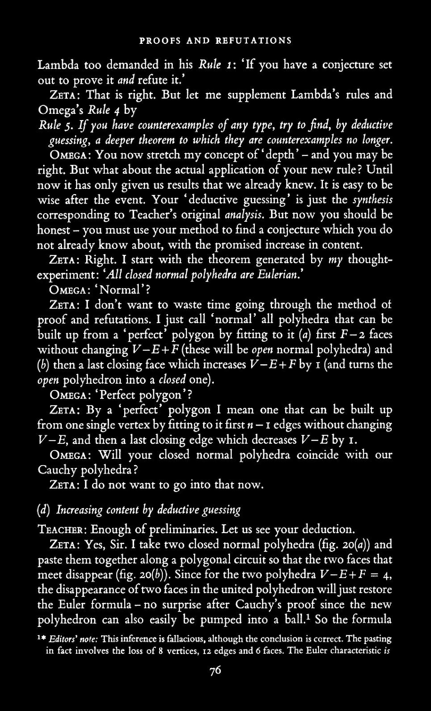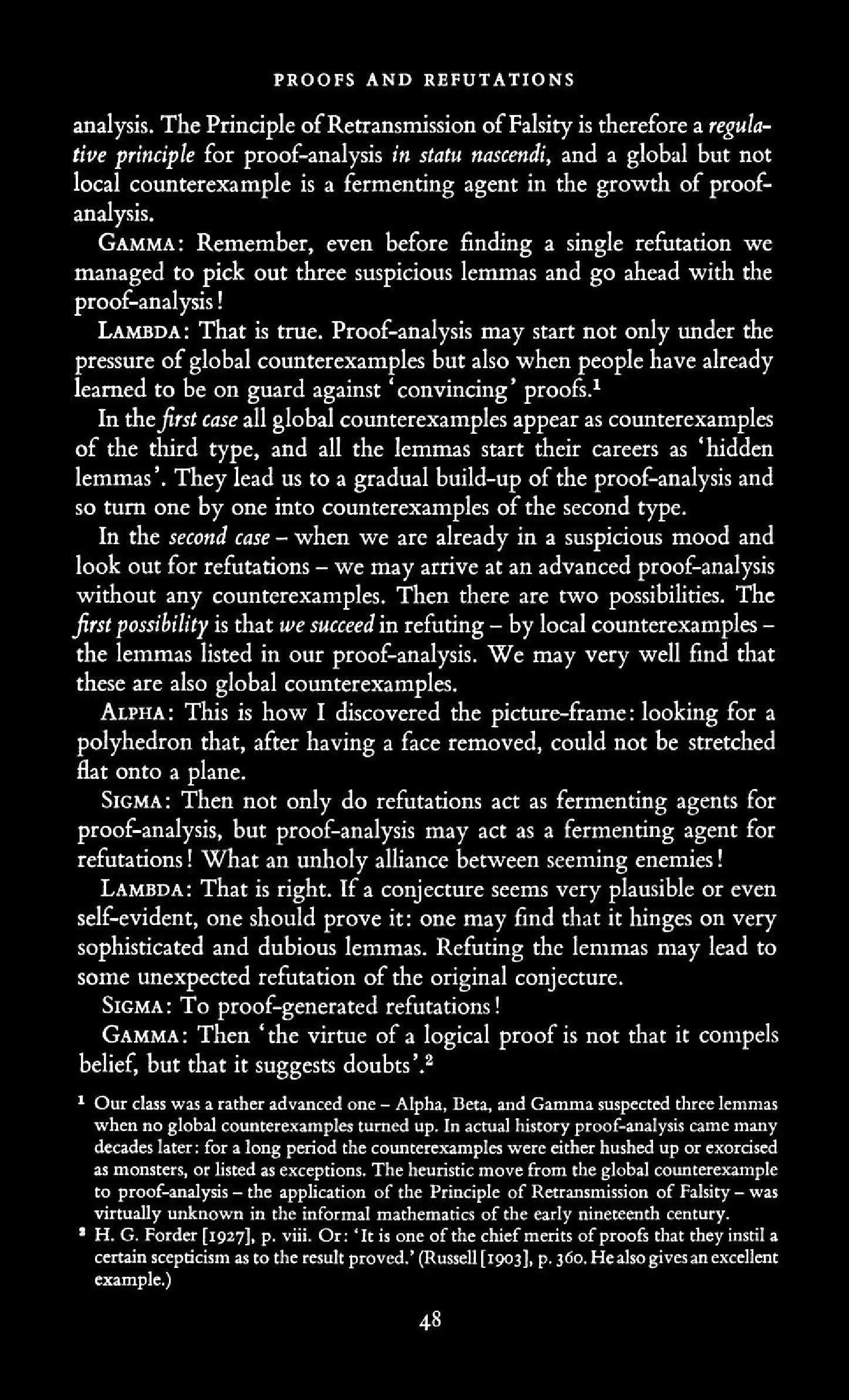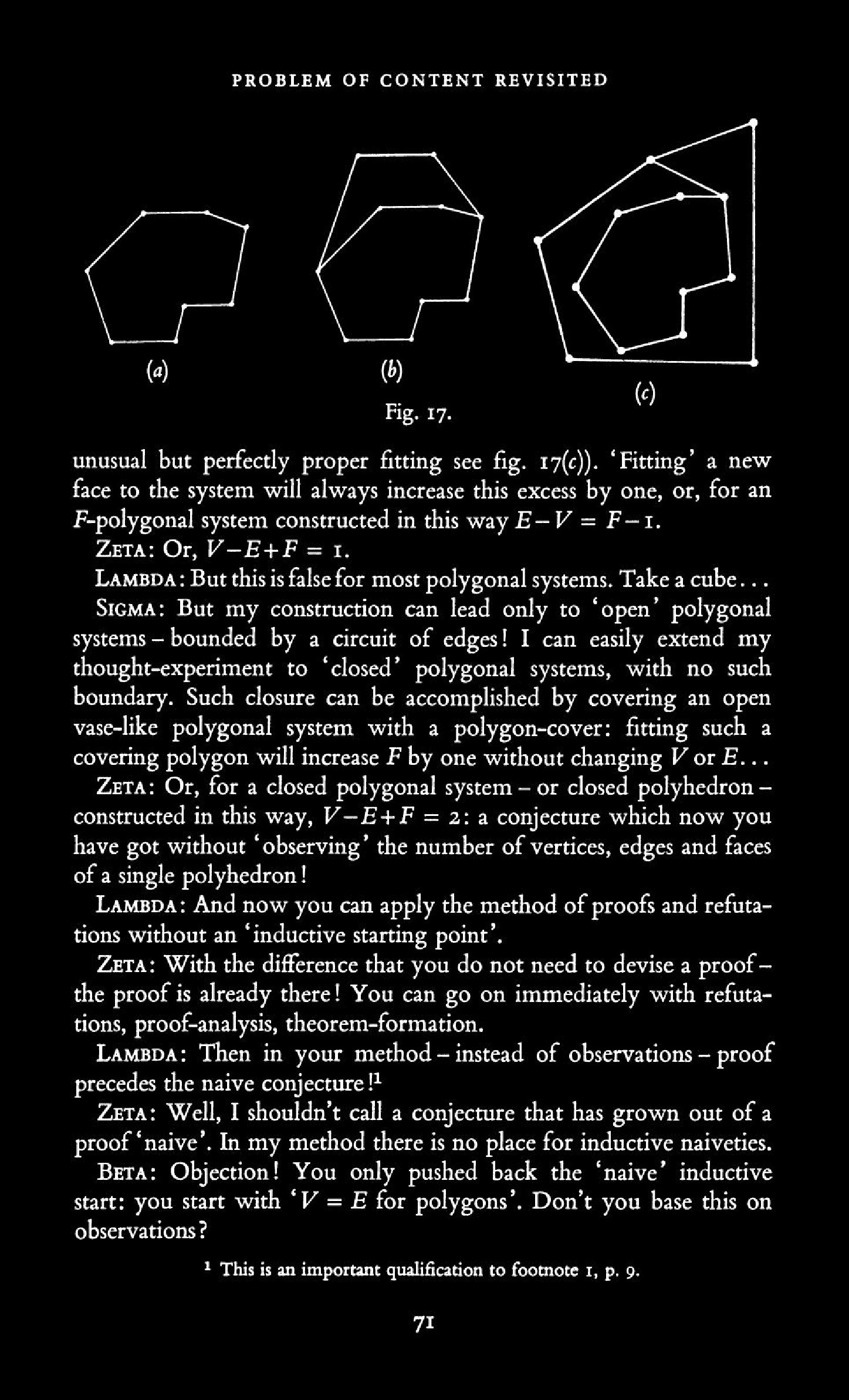 from Imre Lakatos: Proofs and Refutations, The Logic of Mathematical Disovery