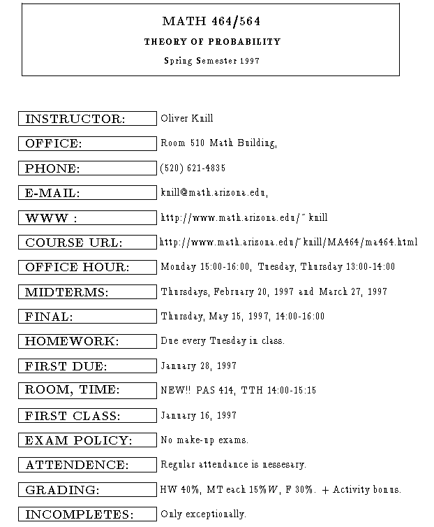 Website http://www.math.arizona.edu/~knill/MA464/ma464.html