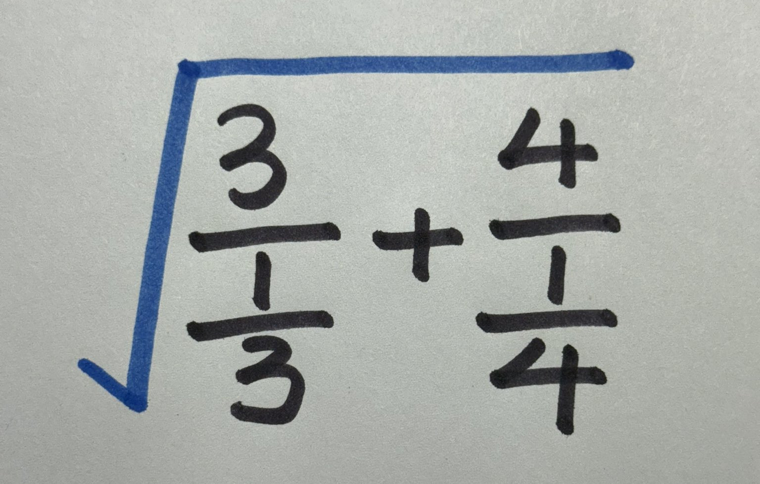 sqrt(2). Division is not associative and 3/1/3 + 4/1/4 is usually resolved from left to right.