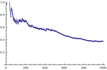 ListPlot[Table[G[n],{n,Length[s]}],PlotRange->{0,1}]