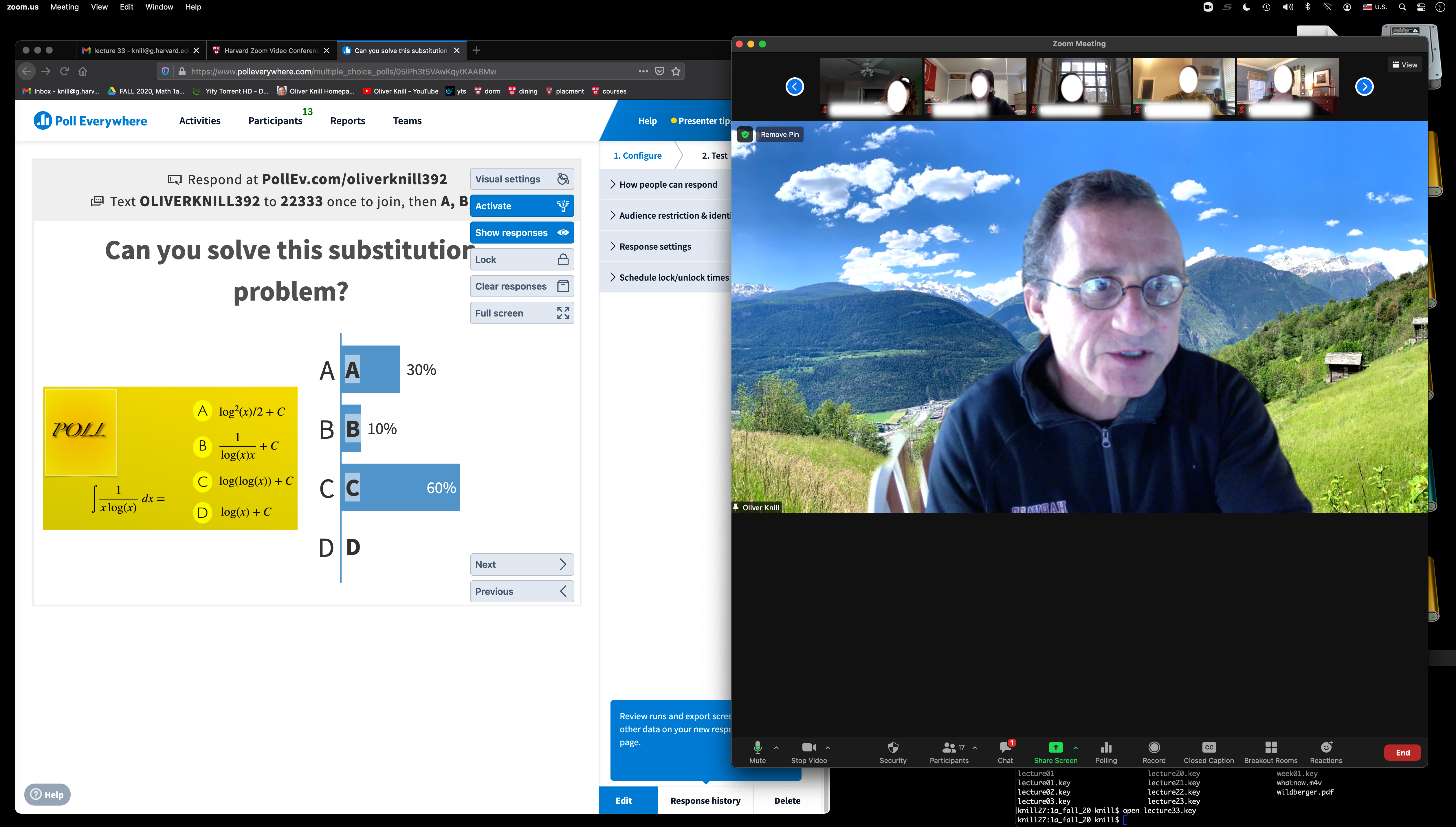 Update 2021: Teaching online from home from March 2021. (click for a larger version) From this lecture in single variable calculus. The youtube version is also a backup in case of technology failure. It is also great preparation and rehearsal and getting into the mood of the lecture.
