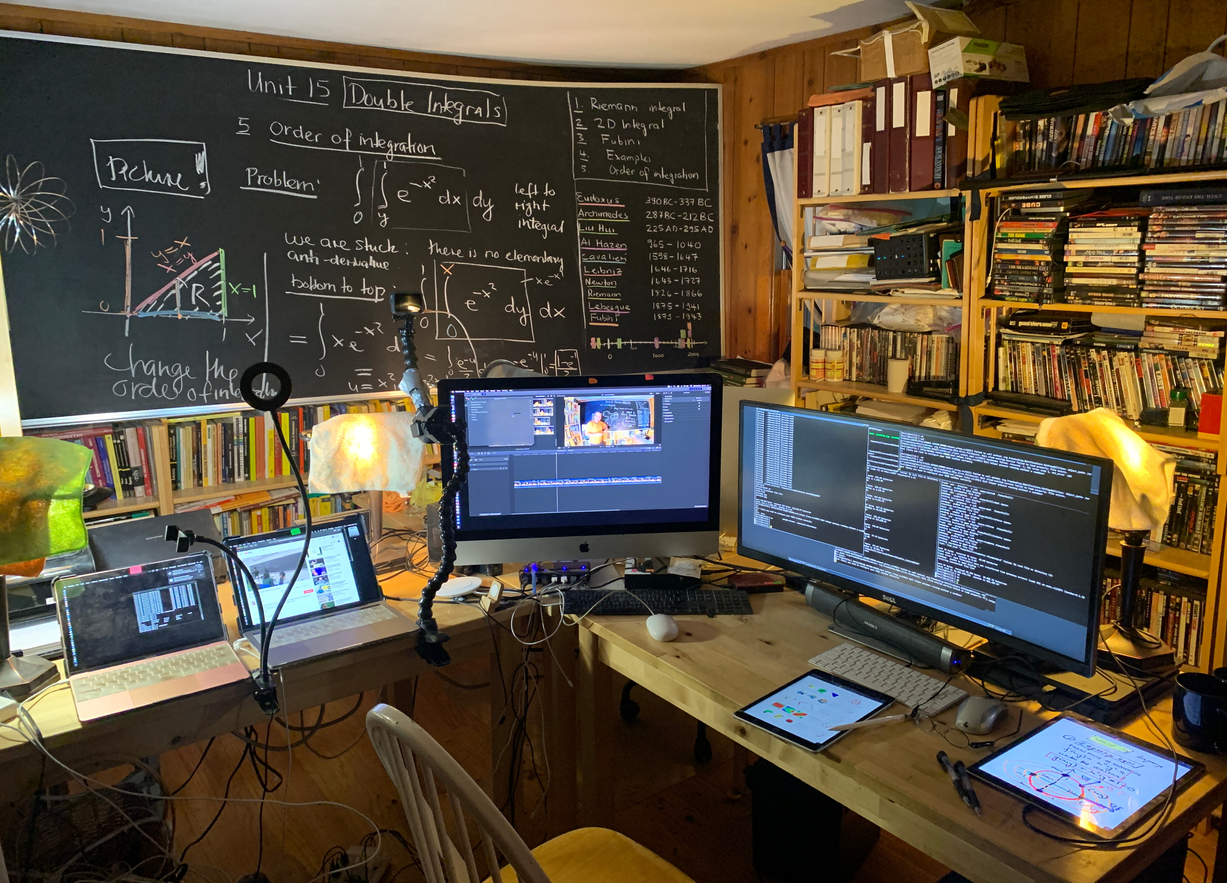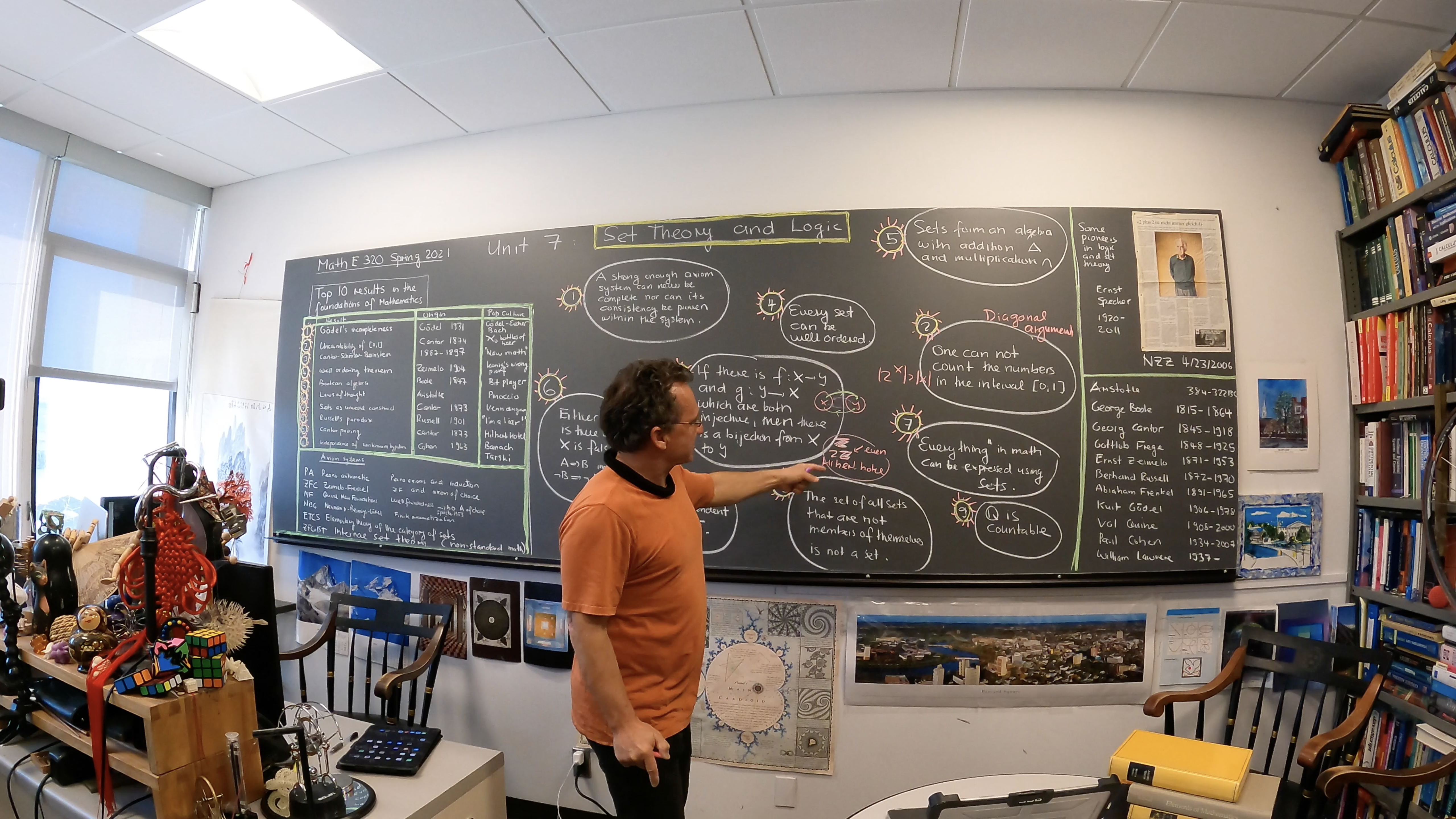 Update 2021: Teaching online from office of March 2021. (click for a larger version) From this lecture in Extension. This is a course which requires to switch into a different part of math every week. Preparation is key even so I teach this course for the 10th time.