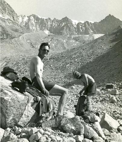 Following de Rham (youtube). | A Fondue recipe handwritten by Jean Piaget in 1979. PDF Scan. He wrote this page in Hotel Bahnhof in Ausserberg (below, we eat there ice cream). Georges de Rham used to visit the area also for climbing tours. De Rham proved his theorem in 1931. The pictures of de Rham taken in the Baltschiedertal (Source), could have been shot round 1940. |