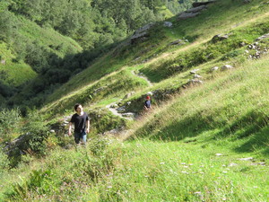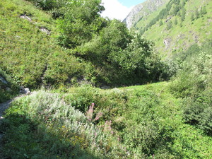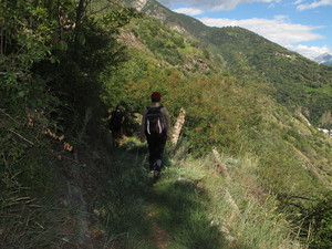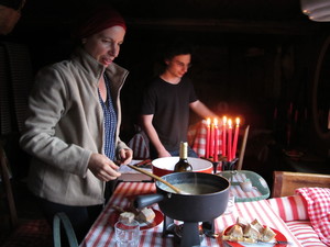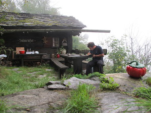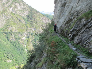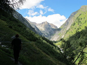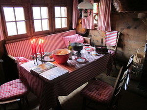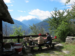 | Fondue im Salmenfee (ein im Jahr 1864 gebautes Chalet), Wanderung im Baltschiedertal (Teil vom Welterbe Schweiz), Rast im Hotel Bahnhof in Ausserberg und Wanderung nach Baltschieder. Bilder vom 12-16. August, 2014. (Klicken auf ein Bild gibt ein grösseres Bild.) | Fondue in Salmenfee (a chalet built in 1864), walk into the Baltschiedertal (part of World heritage), rest in Hotel Bahnhof and decent to Baltschieder. Images: August 12-16, 2014. (Click on picture for larger image.) |