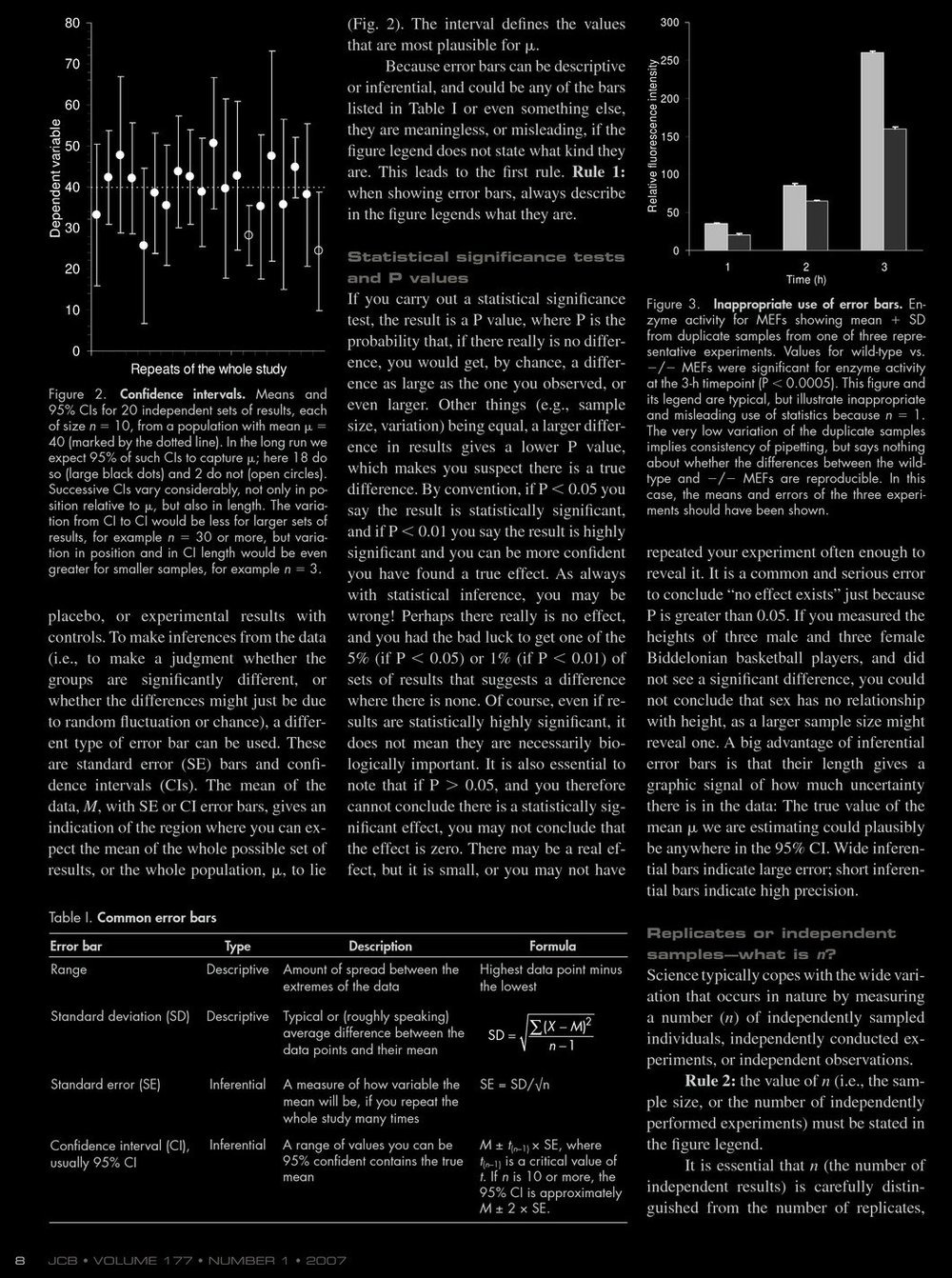 - Rule 3: Use error bars and statistics only for independently repeated experiments, not replicates.