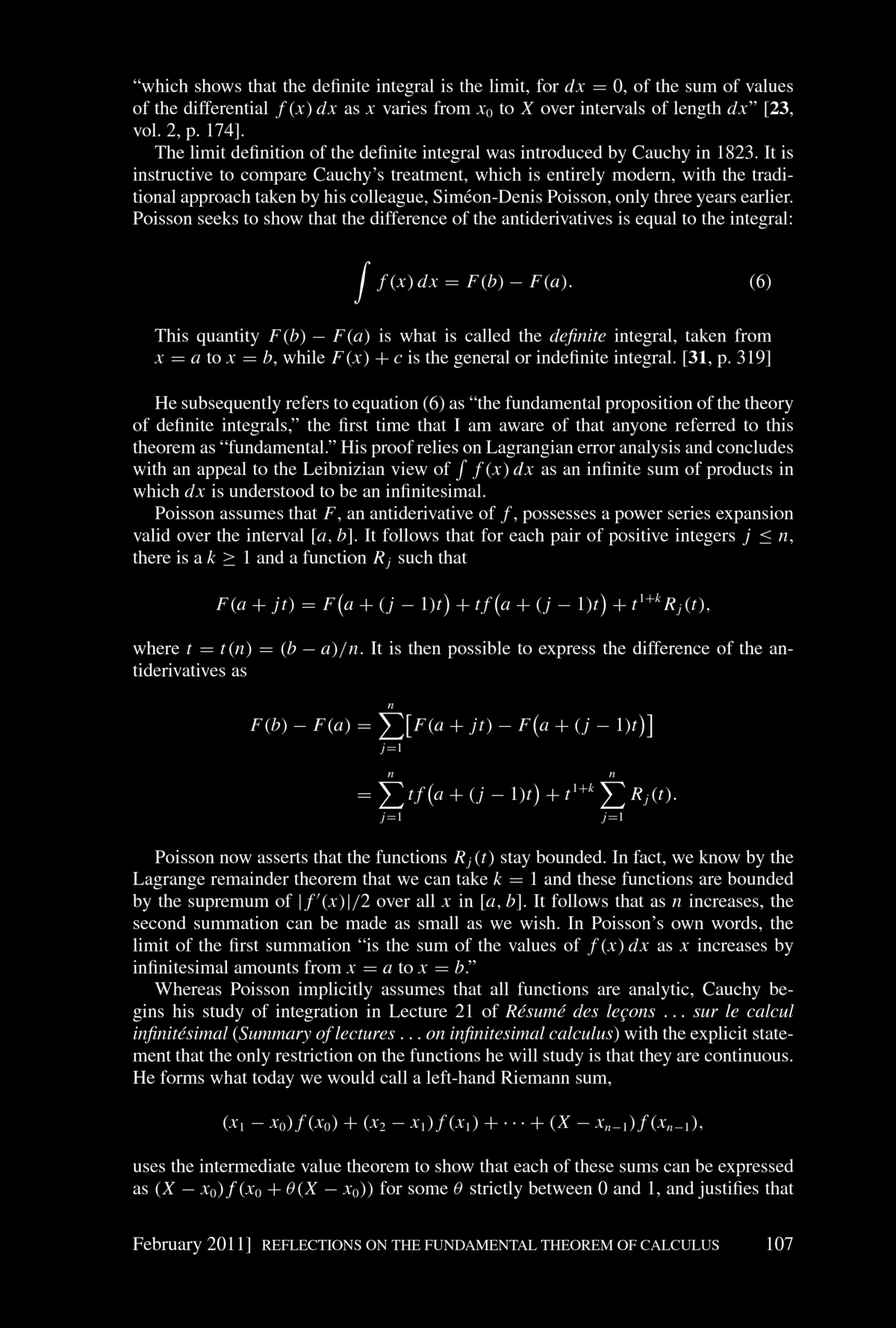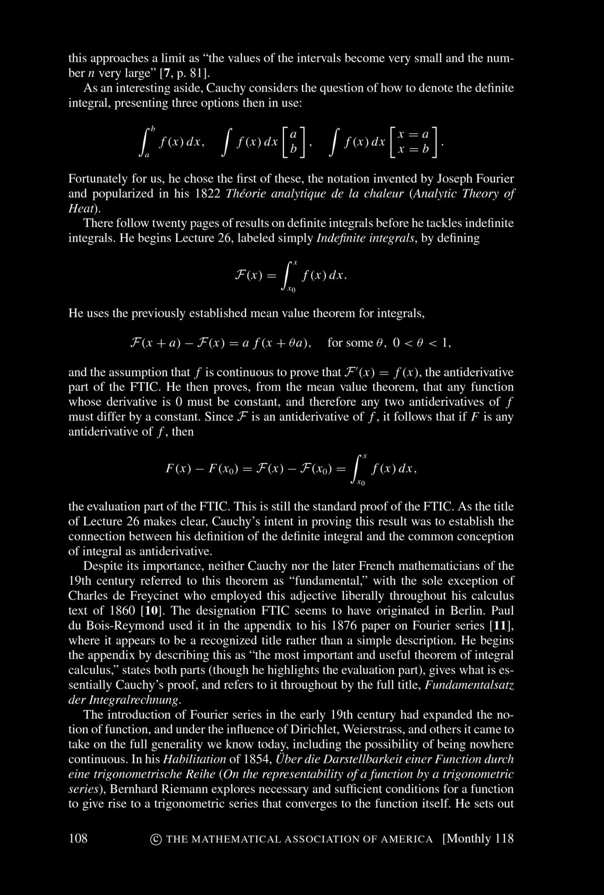 fundamental Theorem of Integral Calculus". You find the article below. Bressoud concludes his article with: