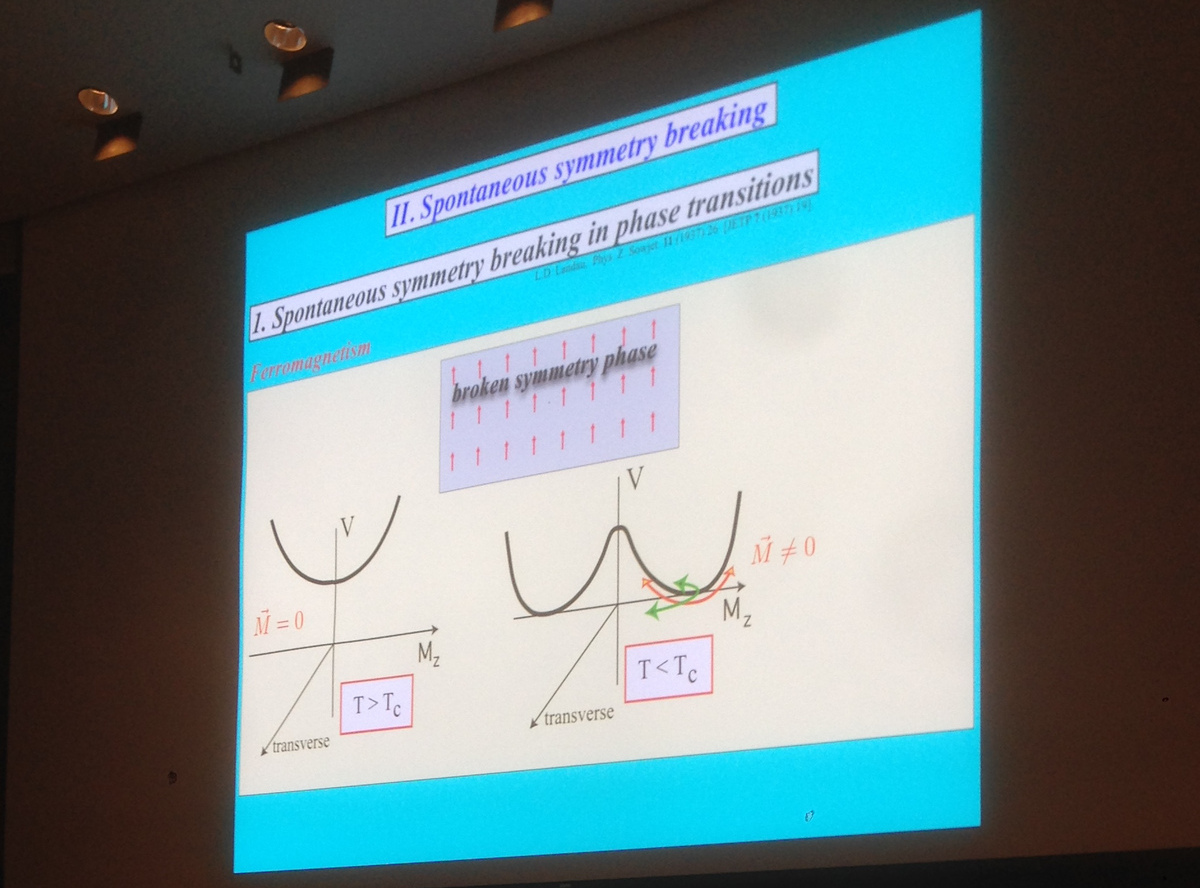 Francois Englert give on April 17 a lecture in Science center B: Do you see the catastrophe, the change of the critical point, on the slide? ![]() This is Francois Englert, together with Lisa Randall.