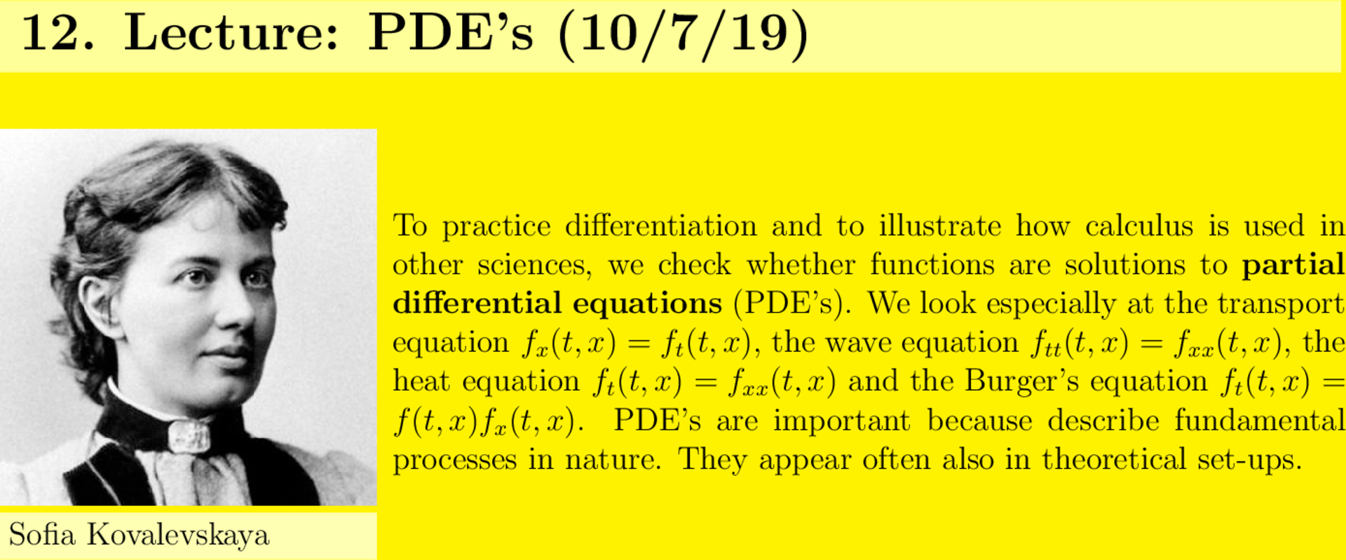 - Handouts on PDE