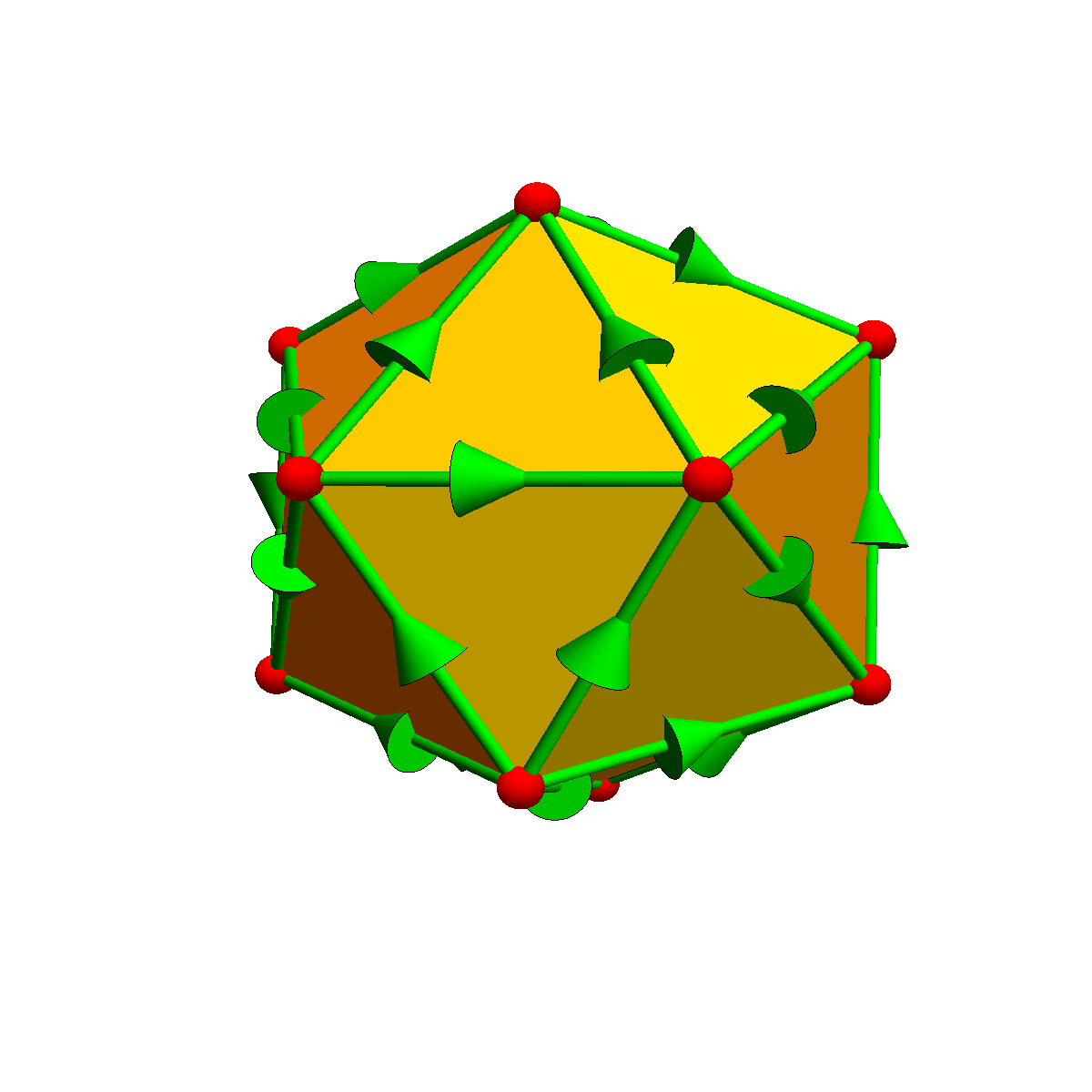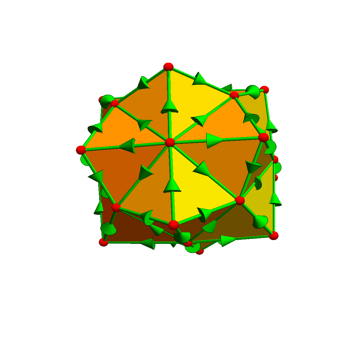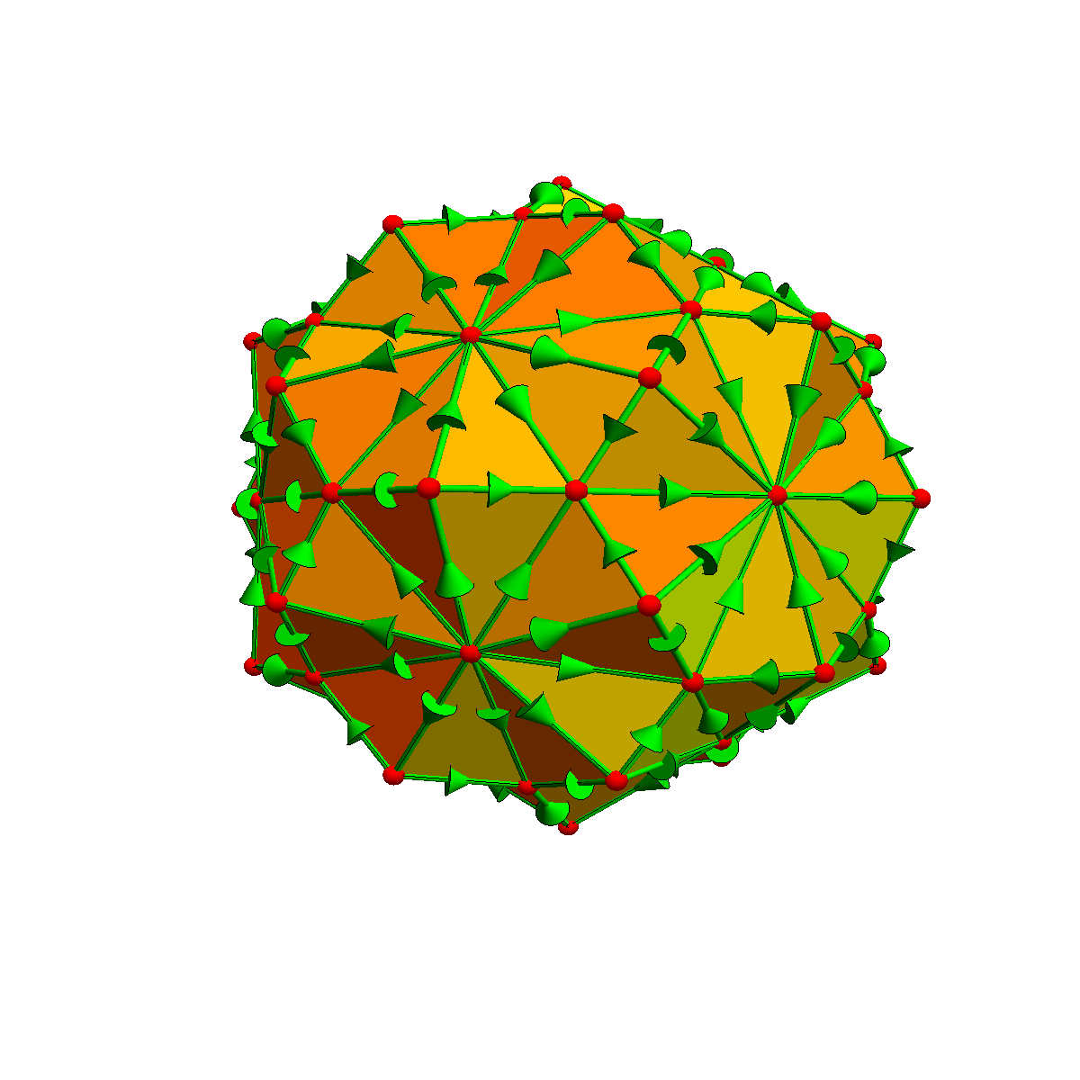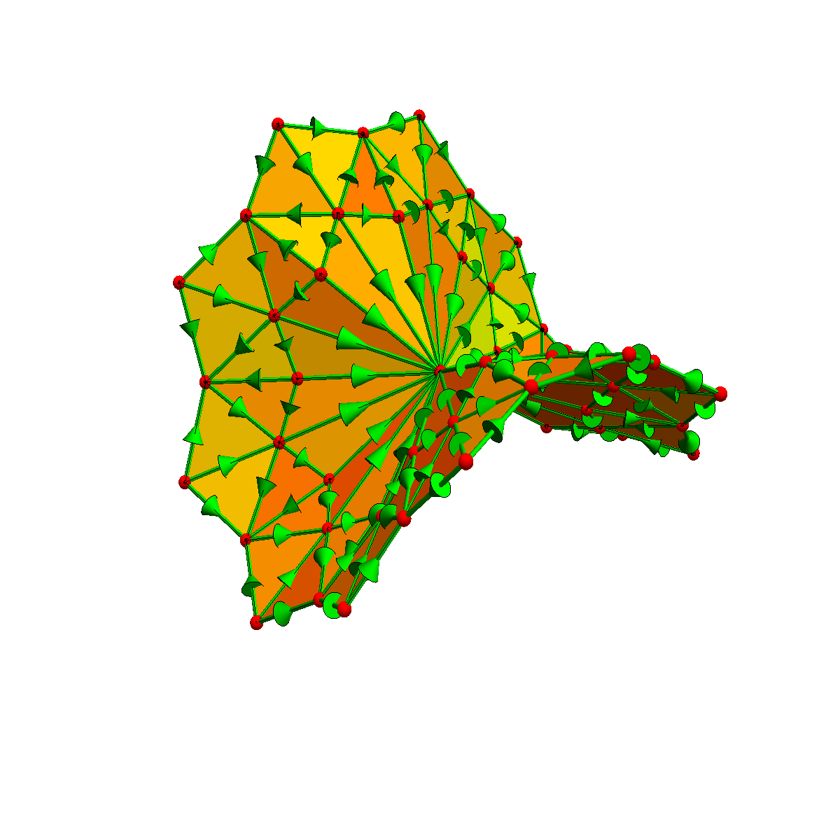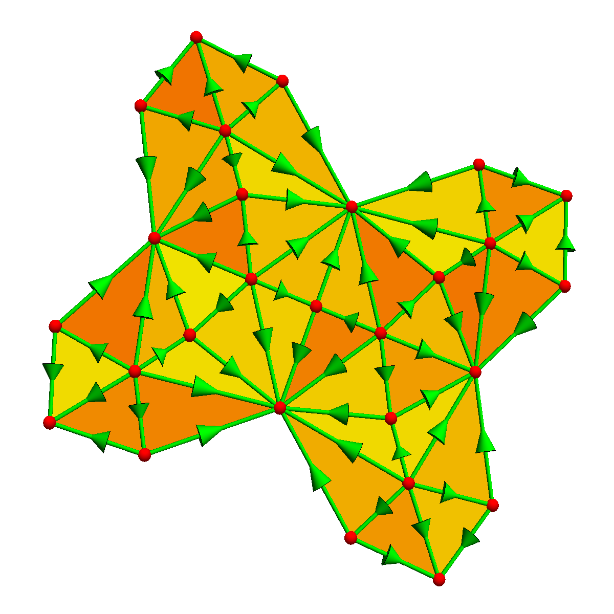 When doing discrete calculus on a surface, we triangulate the surface and attach directions to the edges and triangles. Then we can look at grad and curl and have Stokes theorem in the form of the fundamental theorem of line integral or Green's theorem. Here are some pictures.