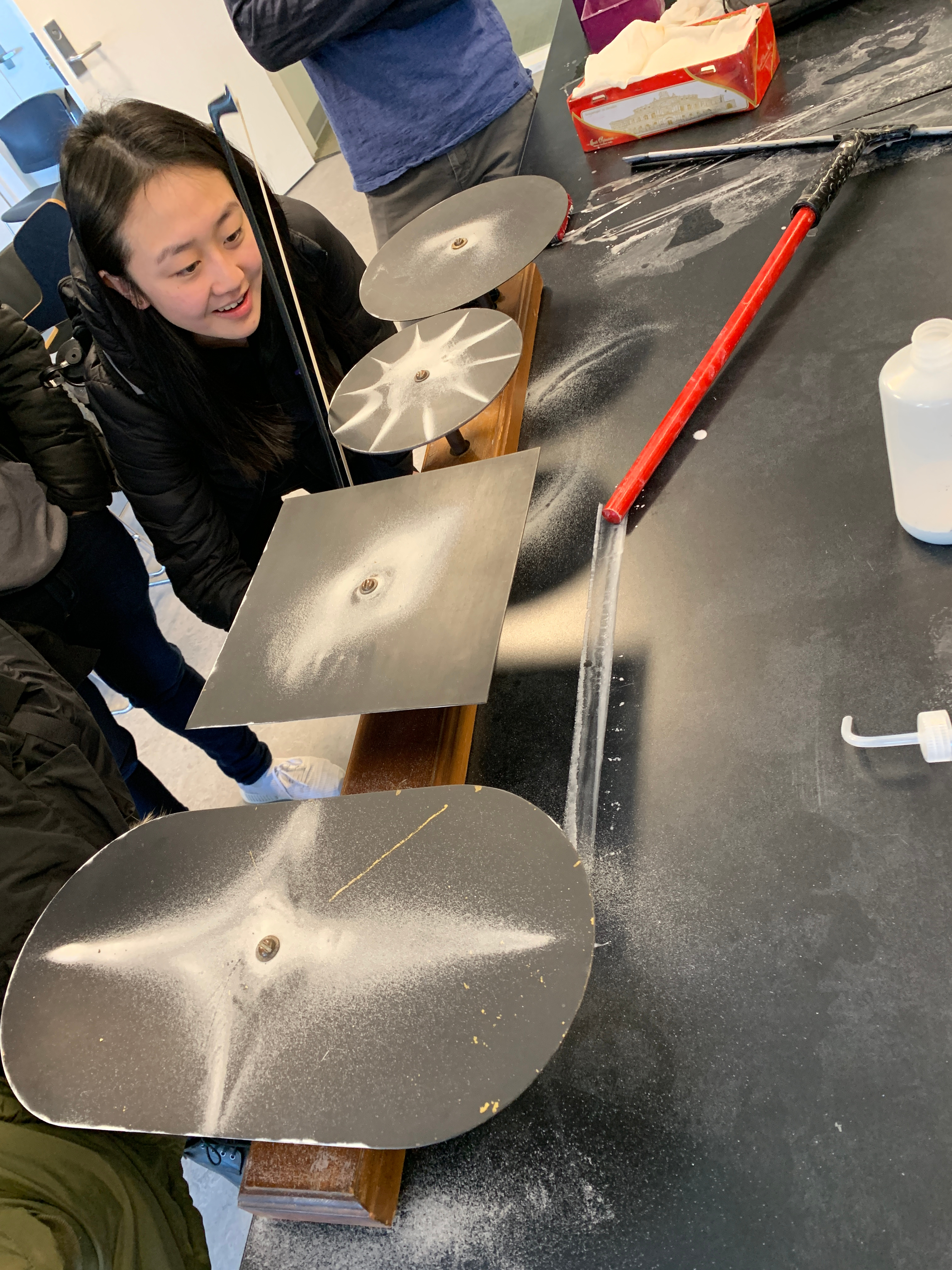 Class of Thursday, March 7, 2019: Click for larger picture. Thanks to the Harvard Prep room for borrowing out the Chladni plates.