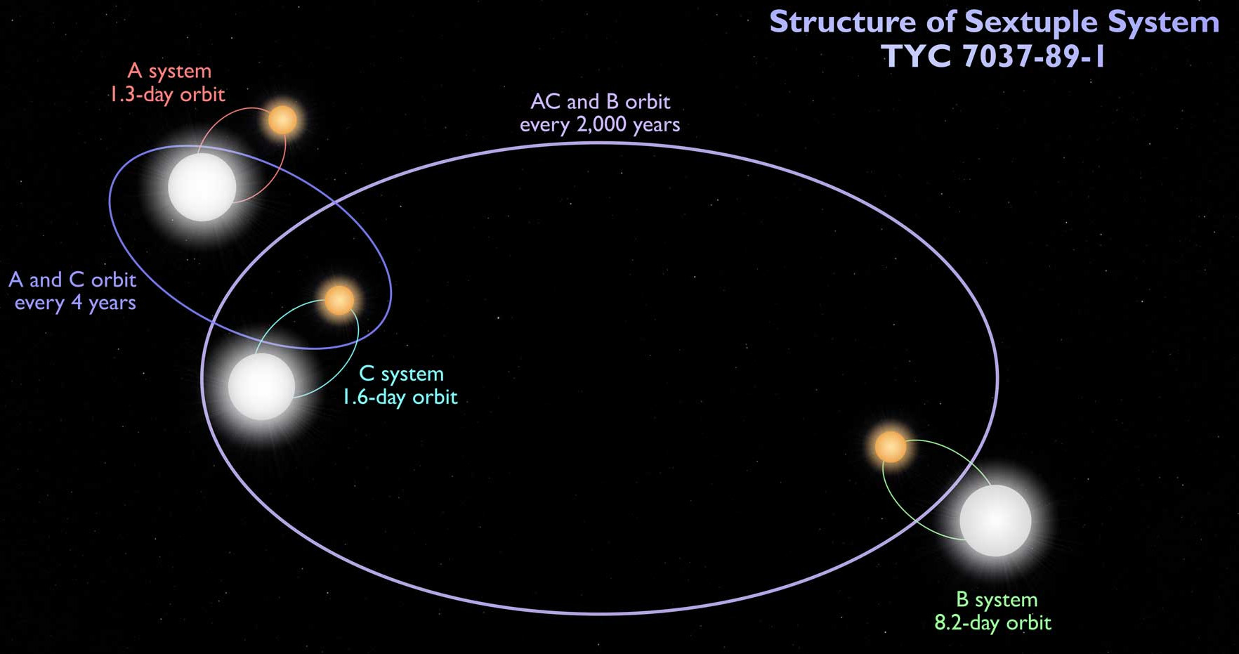 is a starsystem with 6 stars consisting of 3 binary systems. The discovery was done with the NASA-telescop TESS.