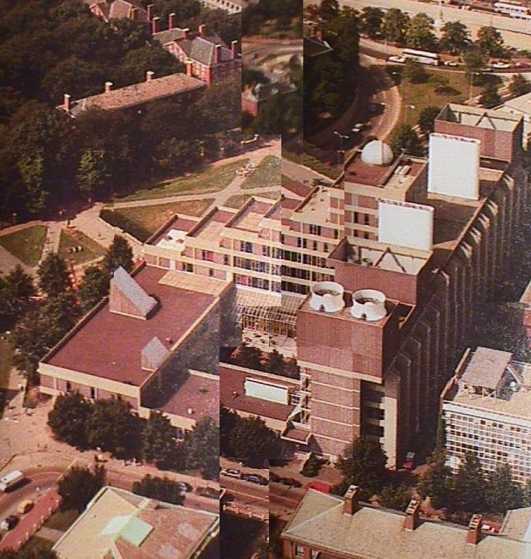 After arriving at Harvard, I scanned some pictures of the science center and wanted to build it in Povray. I worked on it an hour here an hour there. In 2001, I did not find any more time for the project. Here is science.inc and science.pov and greenhouse.inc (pic) leading to this picture. | . |