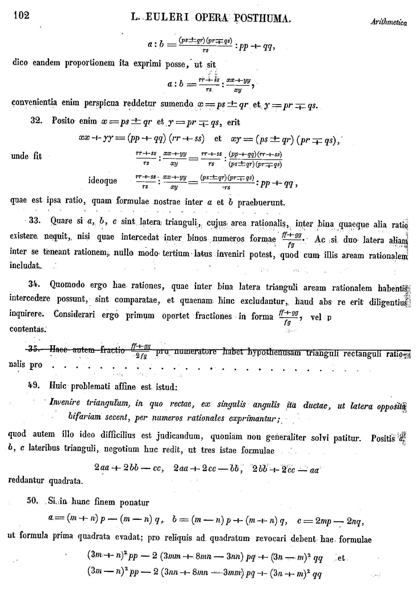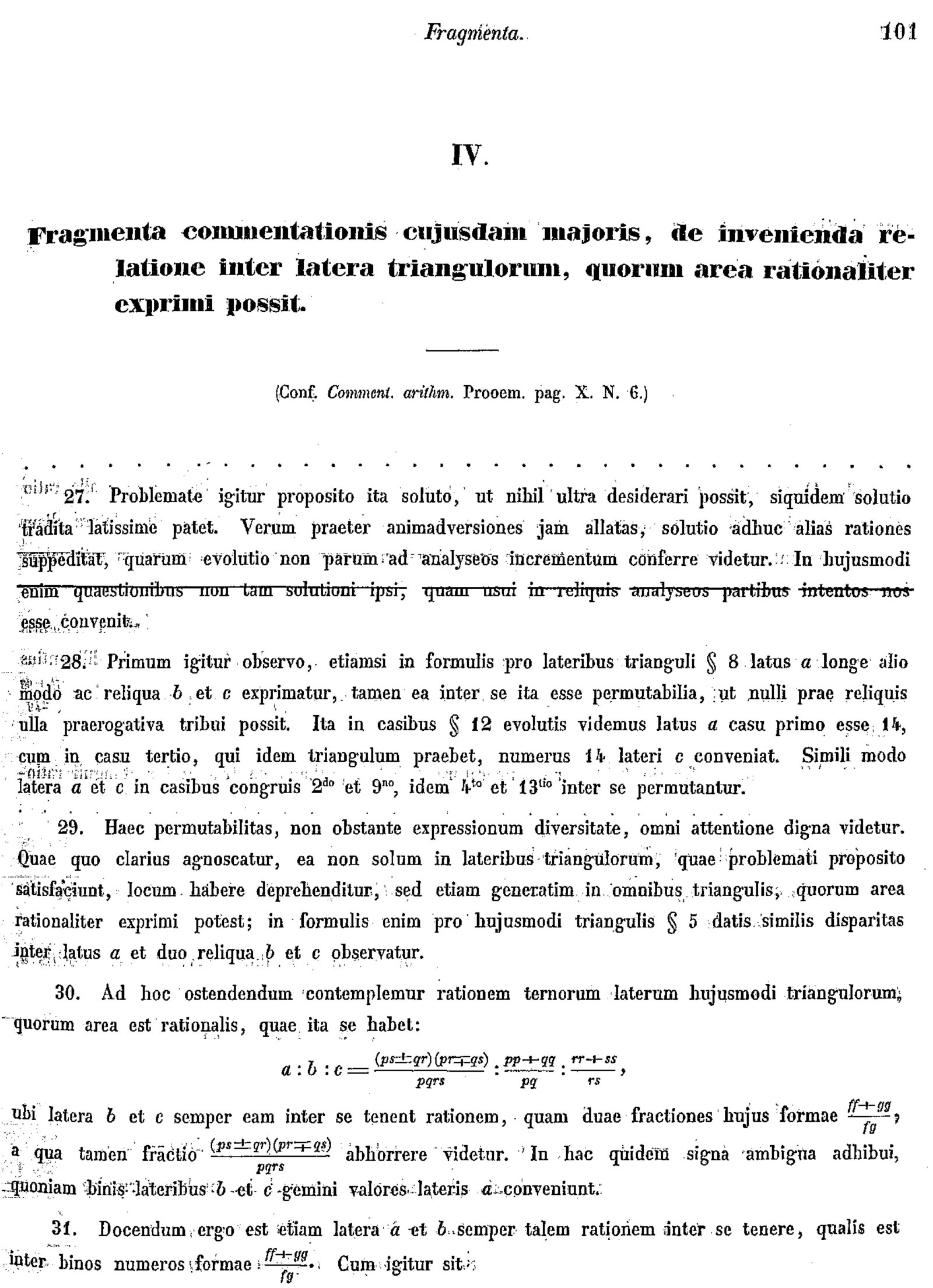 Leonard Euler, E799 -- Fragmenta commentationis cuiusdam maioris, de invenienda relatione enter latera triangulorum, quorum area rationaliter exprimi possit, et de triangulo in quo rectae ex singulis angulis latera opposita bisecantes sint rationales