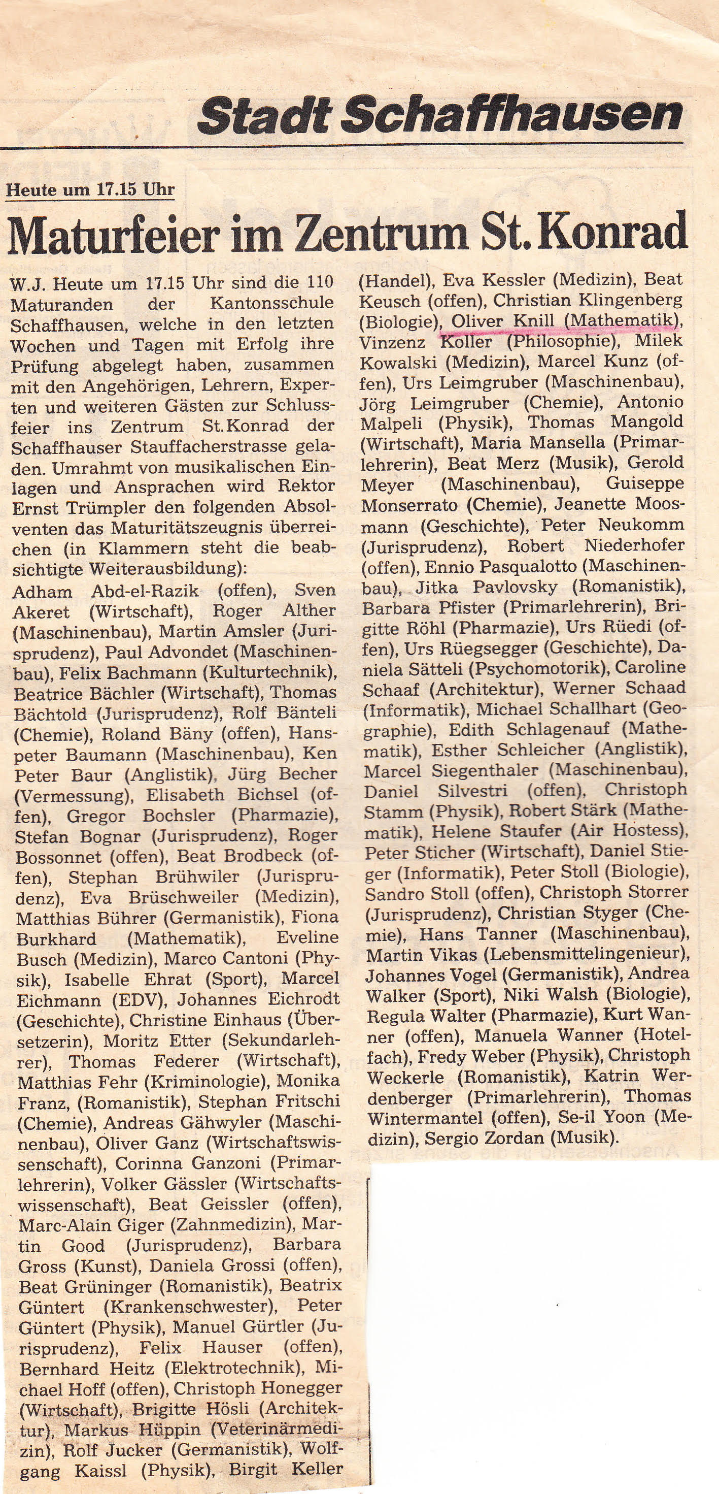 Schaffhauser Nachrichten about graduation