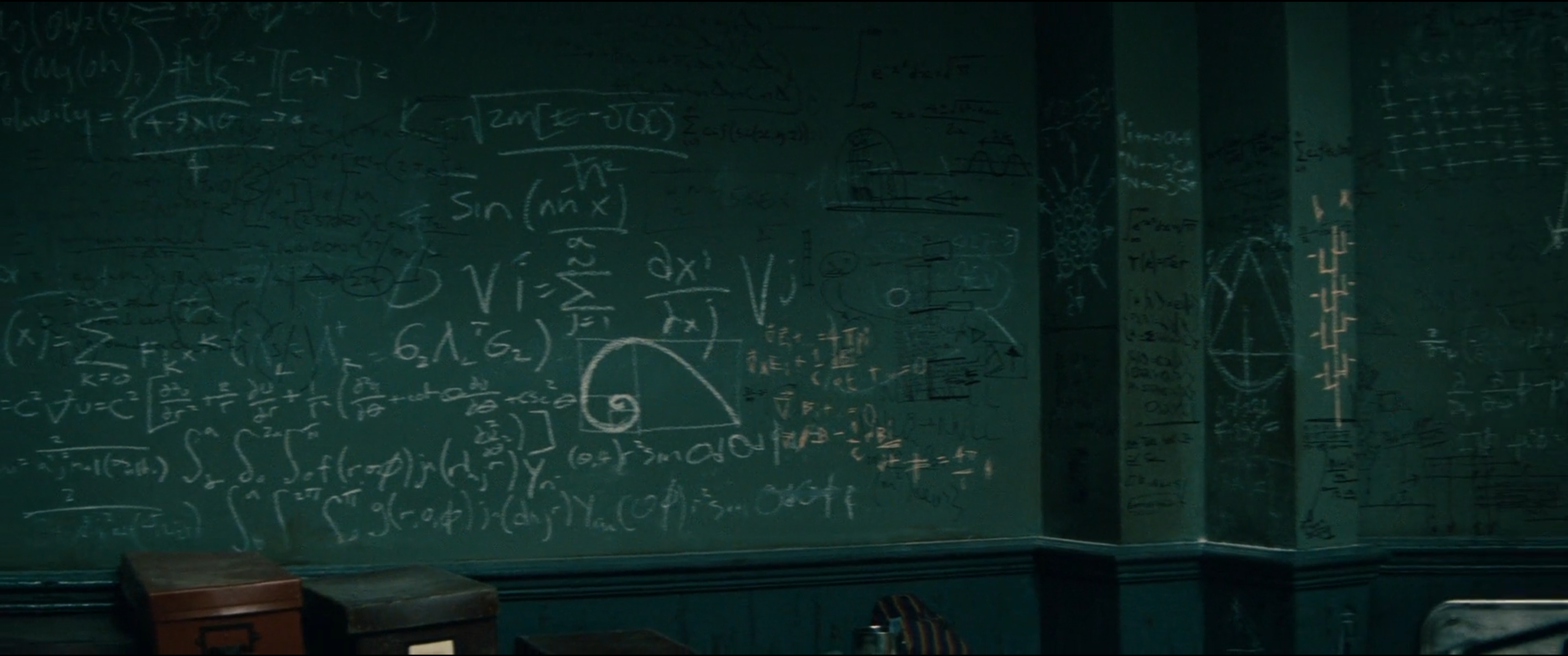 or the Fibonacci spiral on his blackboard. Thanks to Craig Smorynski for the tip.