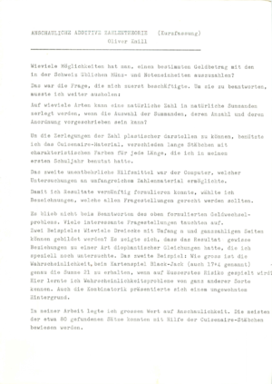 Schweizer Jugend Forscht Arbeit: Oliver Knill, 1981, Anschauliche Zahlentheorie |