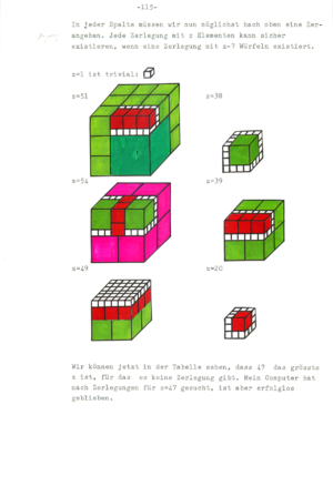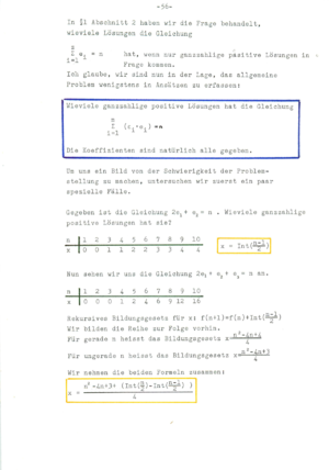 ![]() Discussion with Dr. Hans Giger, 1981, who was an excellent referee at the national competition. (He understood the topic even so his overall assessment was a bit too harsh as I would say now from a distance as there are still results in that work which I could not find yet anywhere, especially relations like generalizations of the beautiful formula (50) page 84). For the experimentally discovered Pentagonal number theorem (I only learned later that Euler did that already), I definitely lacked the technique to prove it. (That I missed generating functions later shocked me). Hans Giger was a student of Willy Scherrer and published also with Hugo Hadwiger. Click on the above picture to see it large. Right: two pages from a publication "50 Jahre Schweizer Jugend Forscht" [PDF], published in April, 2017. |