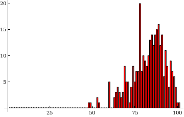 The average score of the class for the first hourly was 75 points, the standard deviation was 13.5.