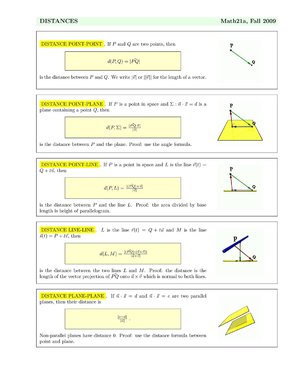 Distance formulas All distance formulas on one page. We expect you to know these formulas or, what is much better, to be able to rederive them. |
