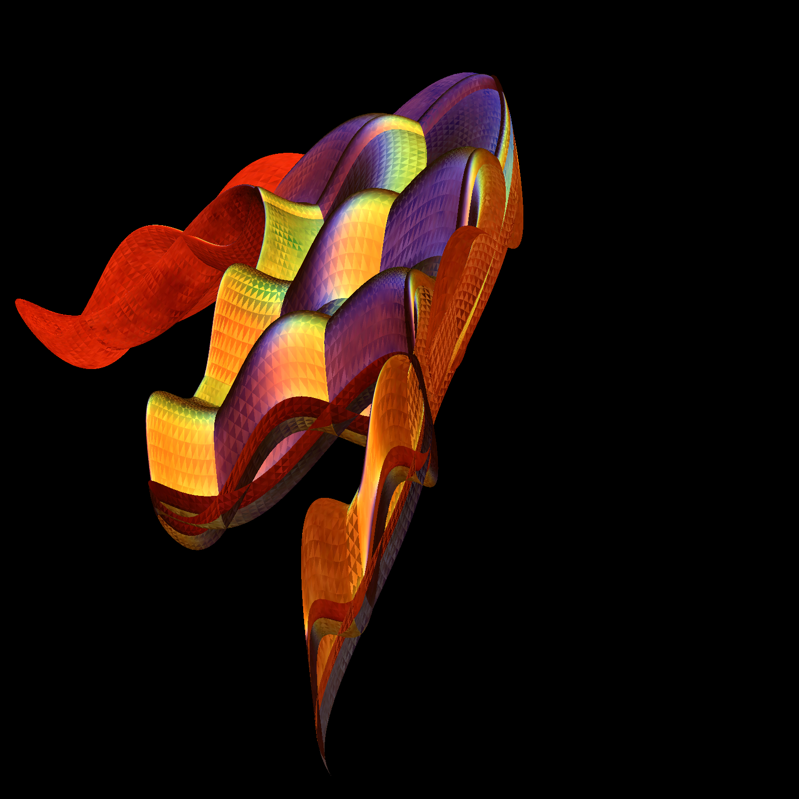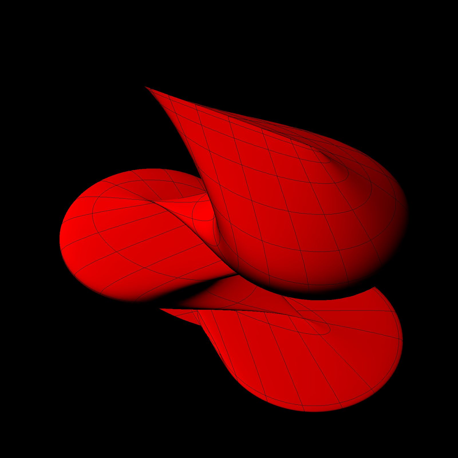The function f(u,v) gives the distance from the origin as a function of the angles u=theta, v=phi. The task of problem A is to render a surface of your choice and print it out. If you use Mathematica, you can of course modify some of the templates above. You can mail the notebook or modified code to knill@math.harvard.edu. We might add some your pictures here.