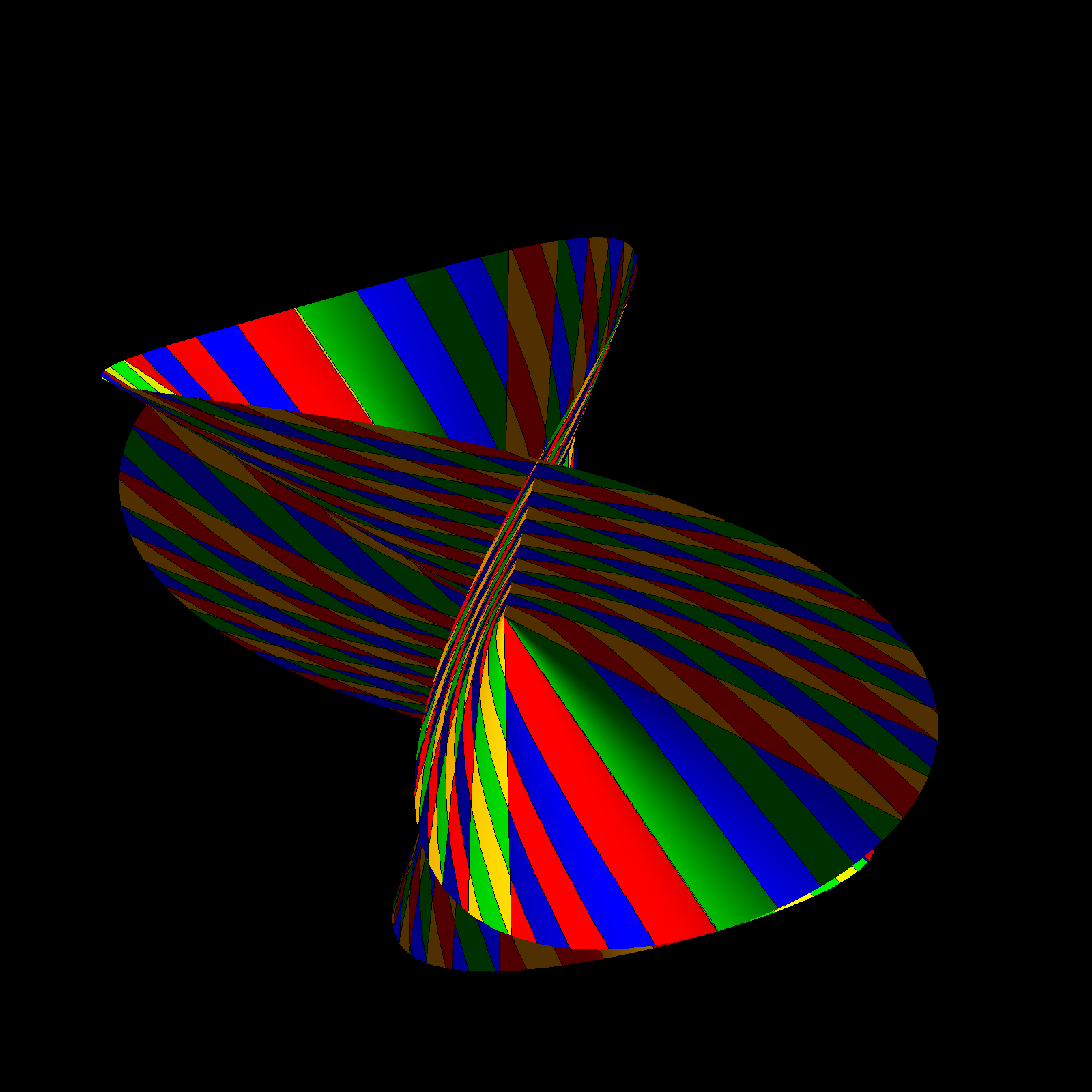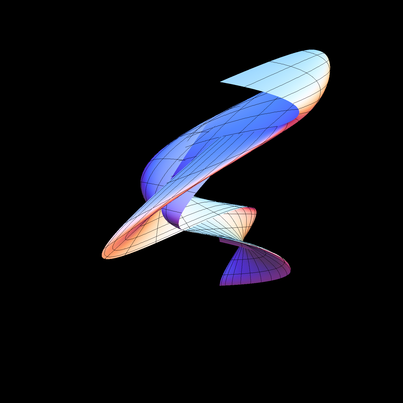 The animation to the left plays with the parametrization and takes r(t,s) = c f[t] + (2-c) f(s) for various c. The example code above has c=1, where r(t,s) = f[t] + f[s]