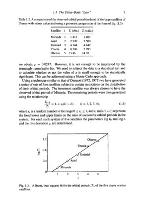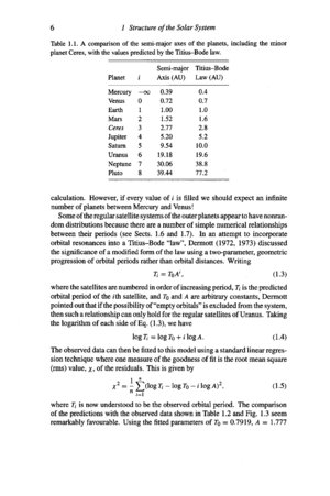 The following pages are from the book "Solar System Dynamics" by C.D. Murray and S.F. Dermott. In the homework you have done some datafitting to derive a Kepler law. Here is an other example of a data fitting problem in astronomy: the Titius-Brade Law: Brade's law was that the distance d from the sun in astronimical units from the sun to each of the six known planets is