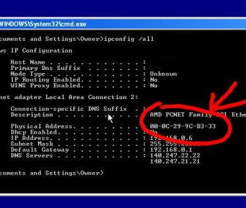 • locate the ethernet adapter description. Example: 00-B0-D0-86-BB-F7