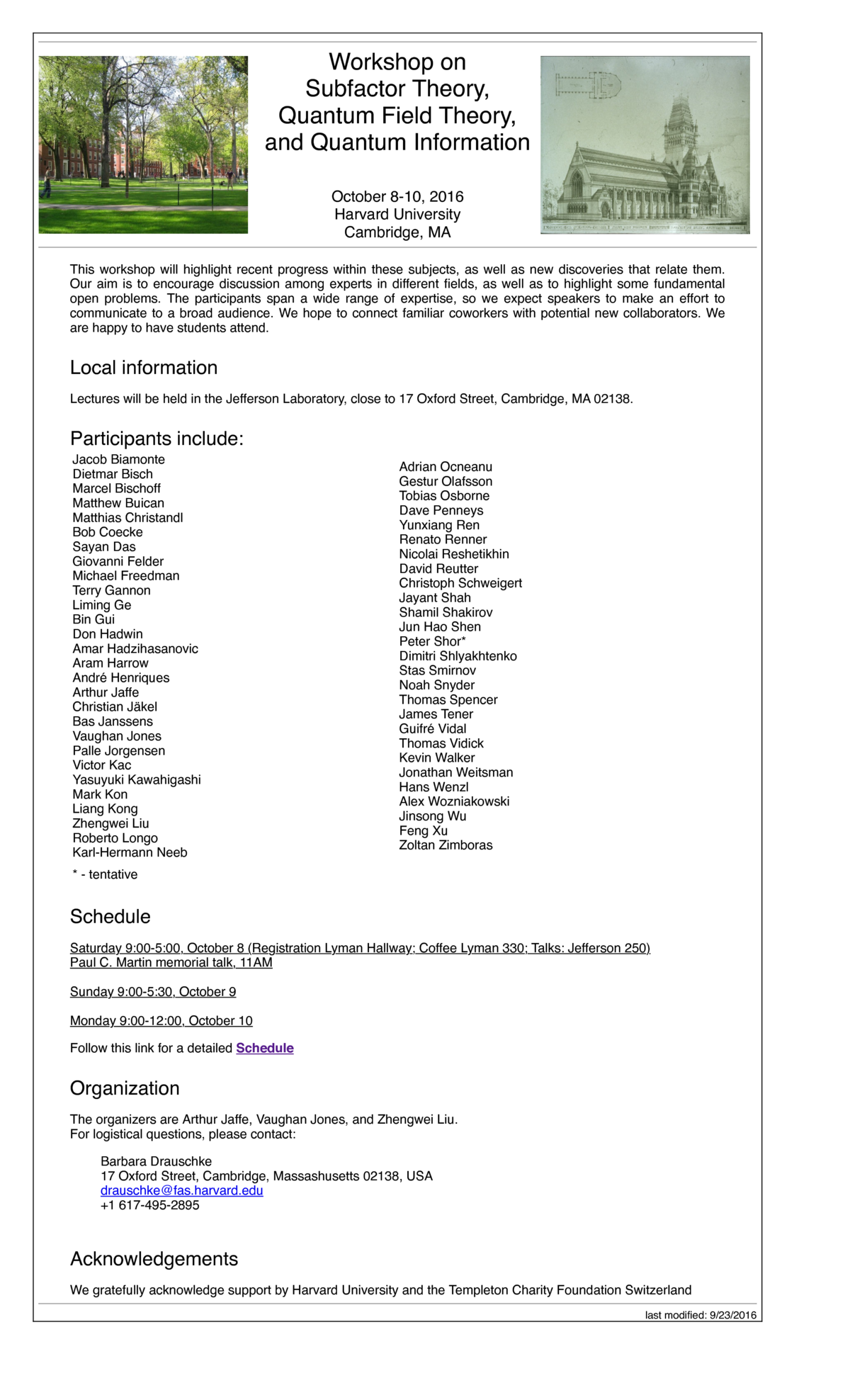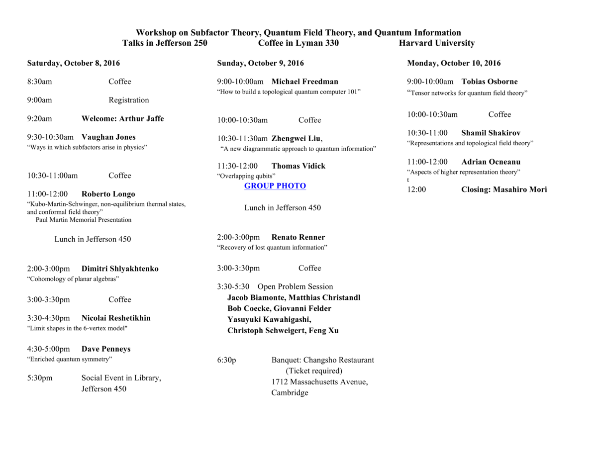 Workshop on Subfactor Theory, Quantum Field Theory, and Quantum Information