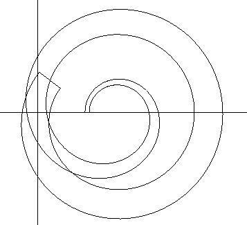 This picture appears without explanation on the web page for John Derbyshire’s Prime Obsession. It is a plot of the Riemann zeta function on the boundary of the rectangle [0.4,0.6]+[0,14.5]i in the complex plane. Since the contour winds around the origin once (and does not contain the point s=1, which is the unique pole of ζ(s)), the zeta function has a unique zero inside this rectangle. Since the complex zeros are known to be symmetric about the line Re(s)=1/2, this zero must have real part exactly equal 1/2, in accordance with the Riemann hypothesis.