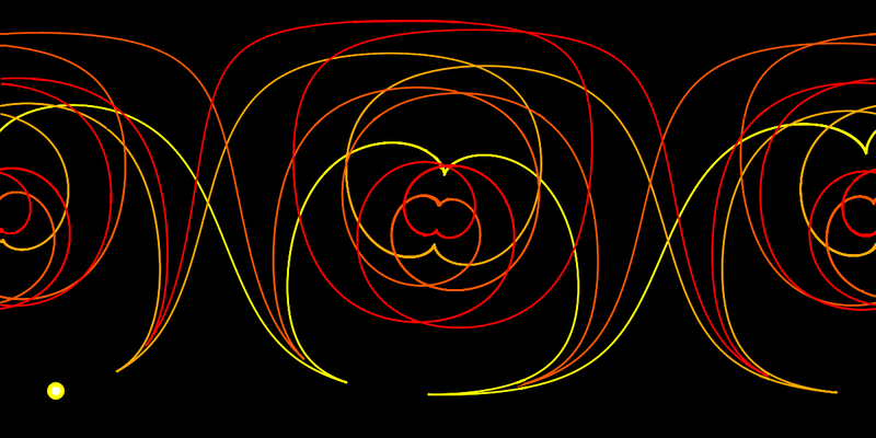 100 geodesics of the 6000 computed geodesics have been drawn. The picture was computed by solving the geodesic equations