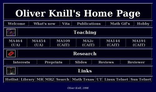 and distributing documents to the class, or for announcements. Here are snapshots for nostalgic reasons. The archived front pages are still accessible by clicking on them but further links do no more work. |
