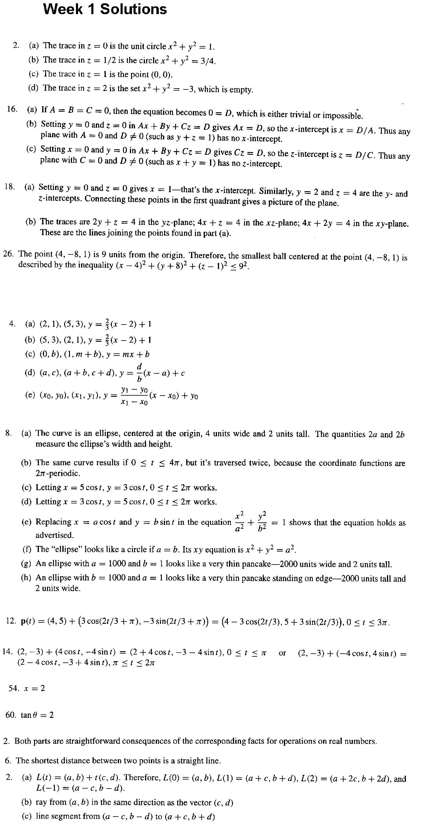 2) For each of the following, find values for the constants a,b which make the given vector