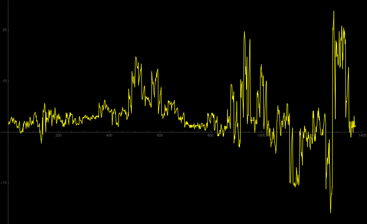 measures some kind of acceleration. While v(k) = p(k+1)-p(k) is a rate of change, the rate of change