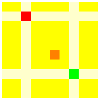 Lets count the number of upcrossings before and after the switch. Assume row a and c are switched. We look at one pattern and assume that(a,b) be an entry on row a and (c,d) is an entry on row b. The entry (a,b) changes the number of upcrossings to (c,d) by 1 (there is one upcrossing from (a,b) to (c,d) before which is absent after). For each entry (x,y) inside the rectangle (a,c) x (b,d), the number of upcrossings from and to (x,y) changes by two. (there are two upcrossings to and from the orange squares before which are absent after). For each entry outside the rectangle and different from (a,b),(c,d), the number of upcrossings does not change.