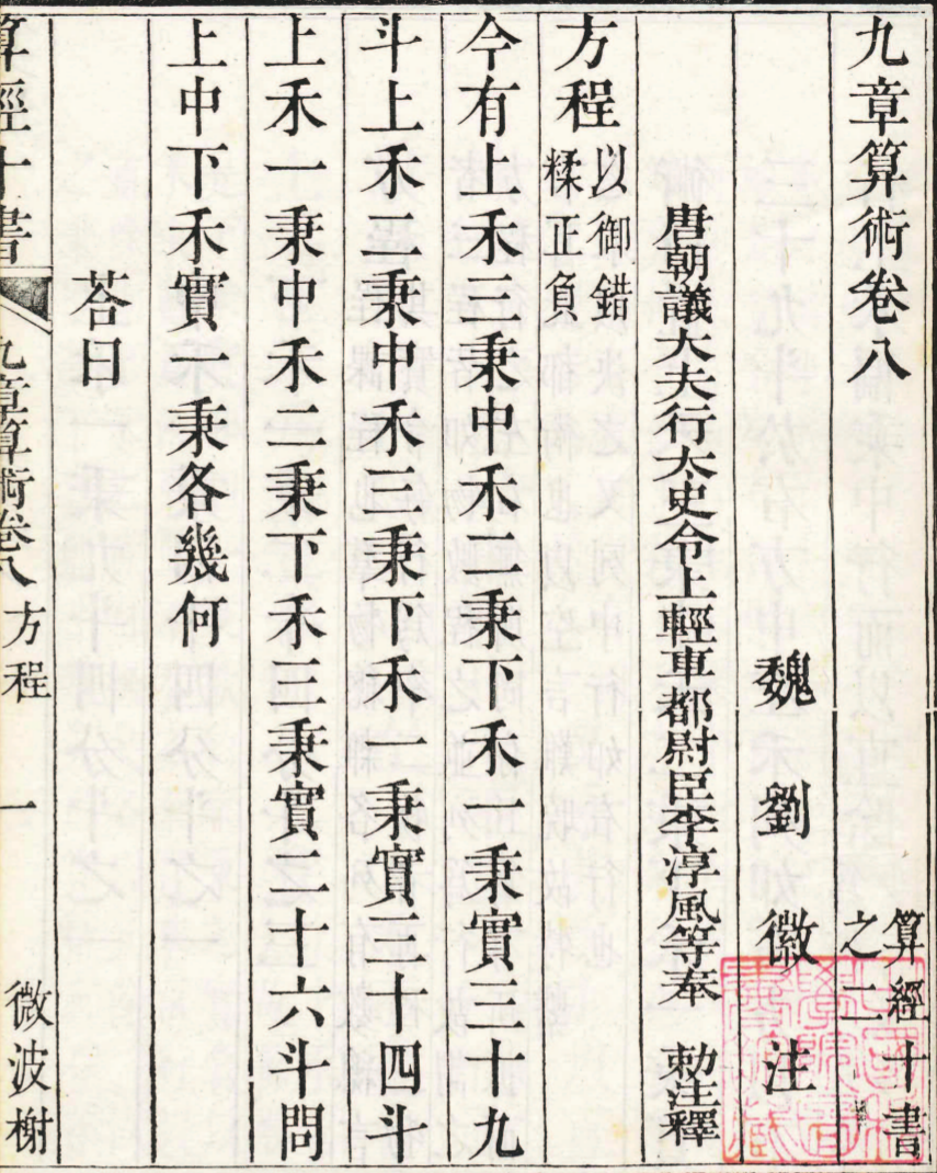(Jiu Zhang Suan Shu) in 263. Here is the problem