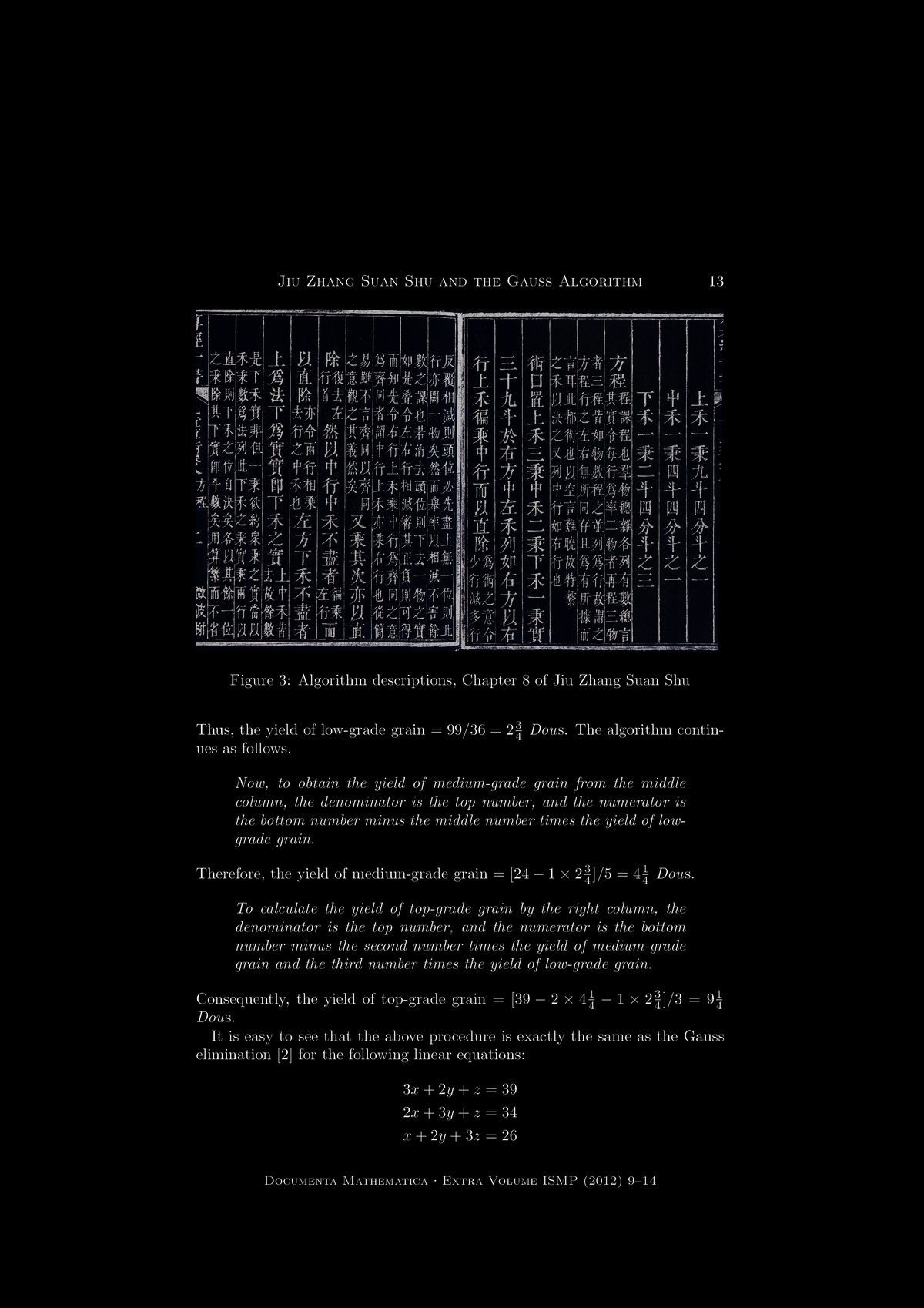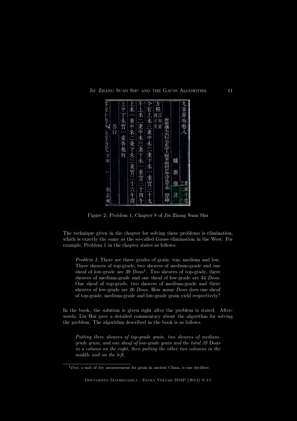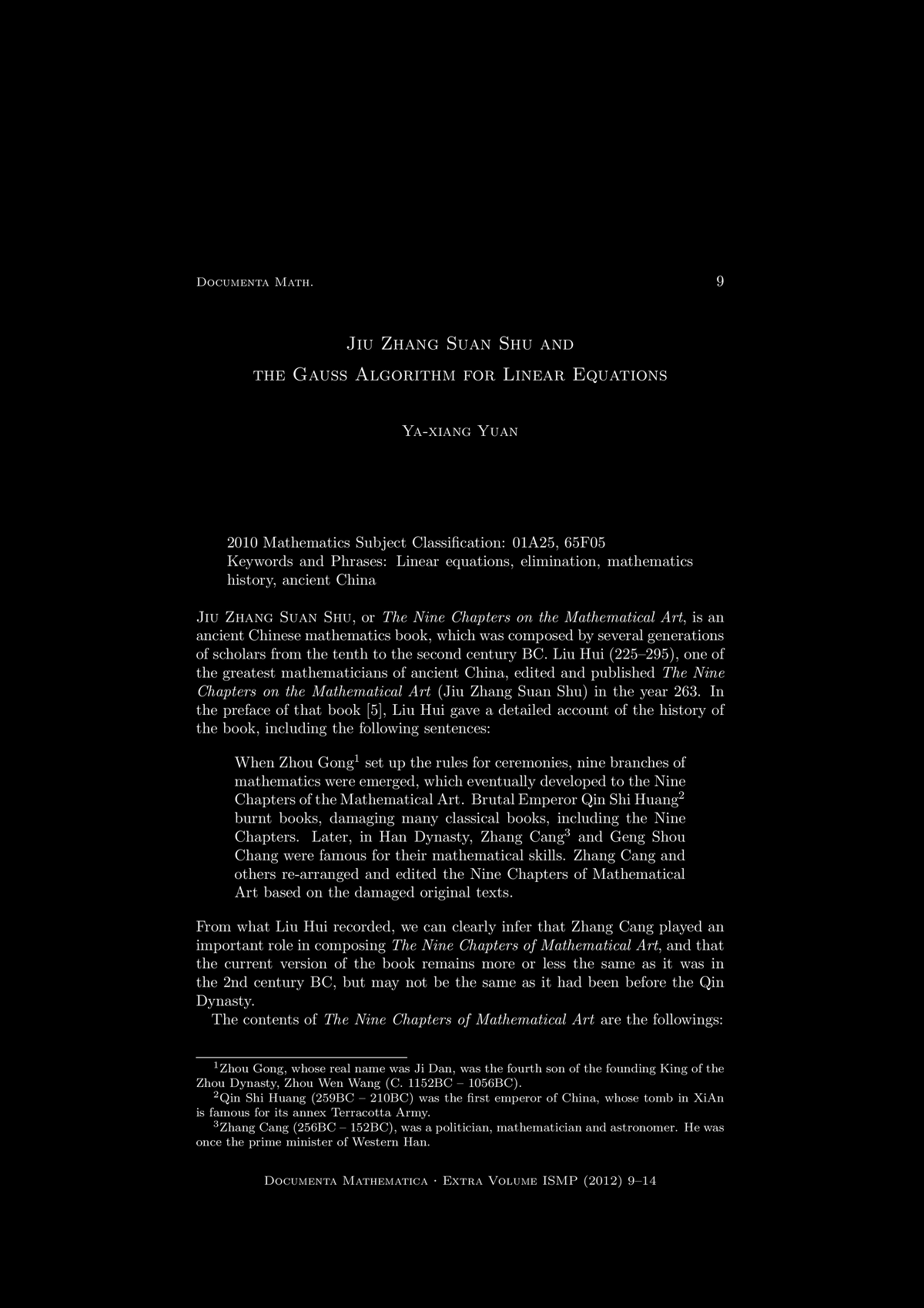 "Jiu Zhang Suan Shu and the Gauss Algorithm for Linear Equations",