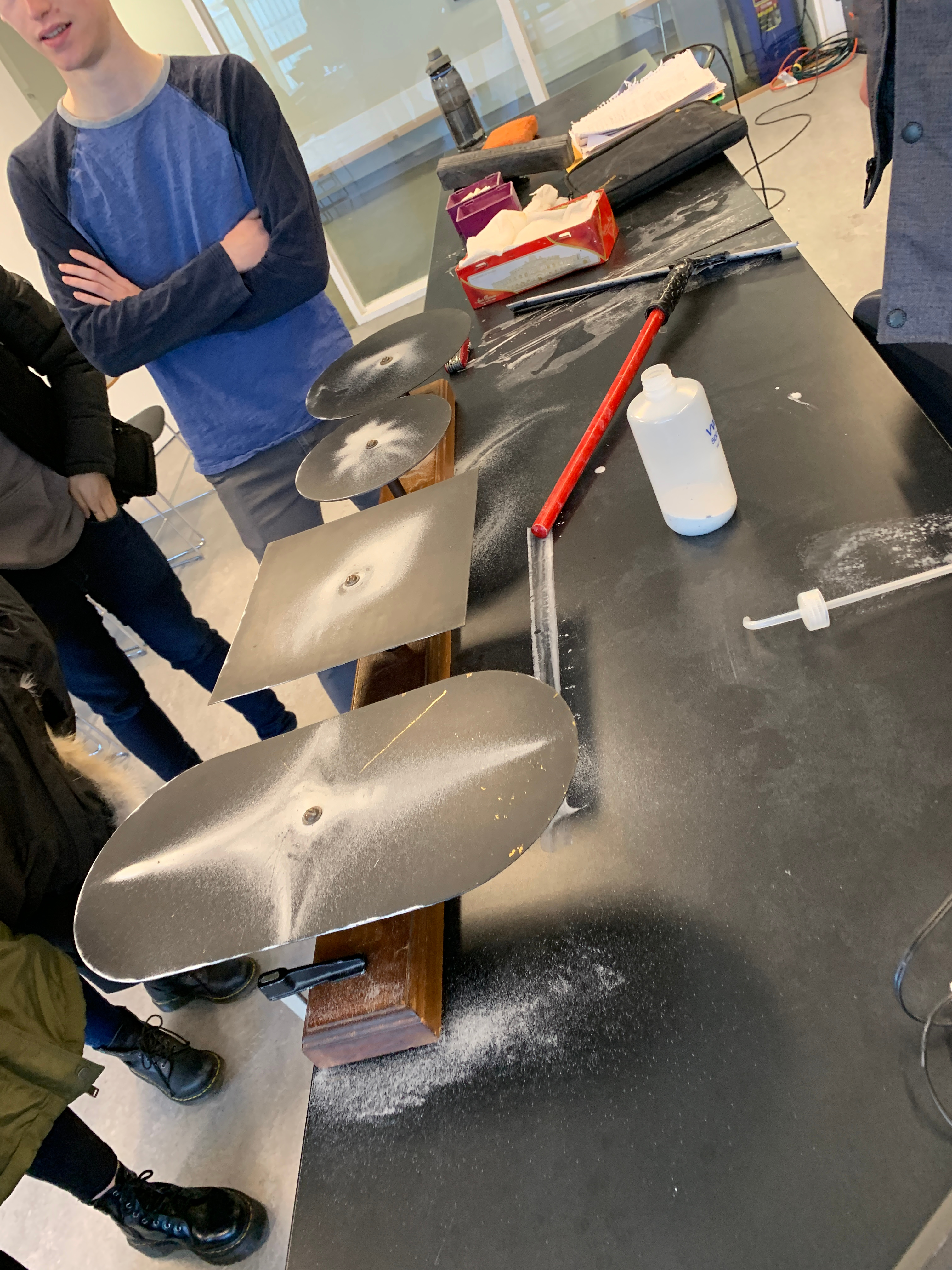 Class of Thursday, March 7, 2019: Click for larger picture. Thanks to the Harvard Prep room for borrowing out the Chladni plates.
