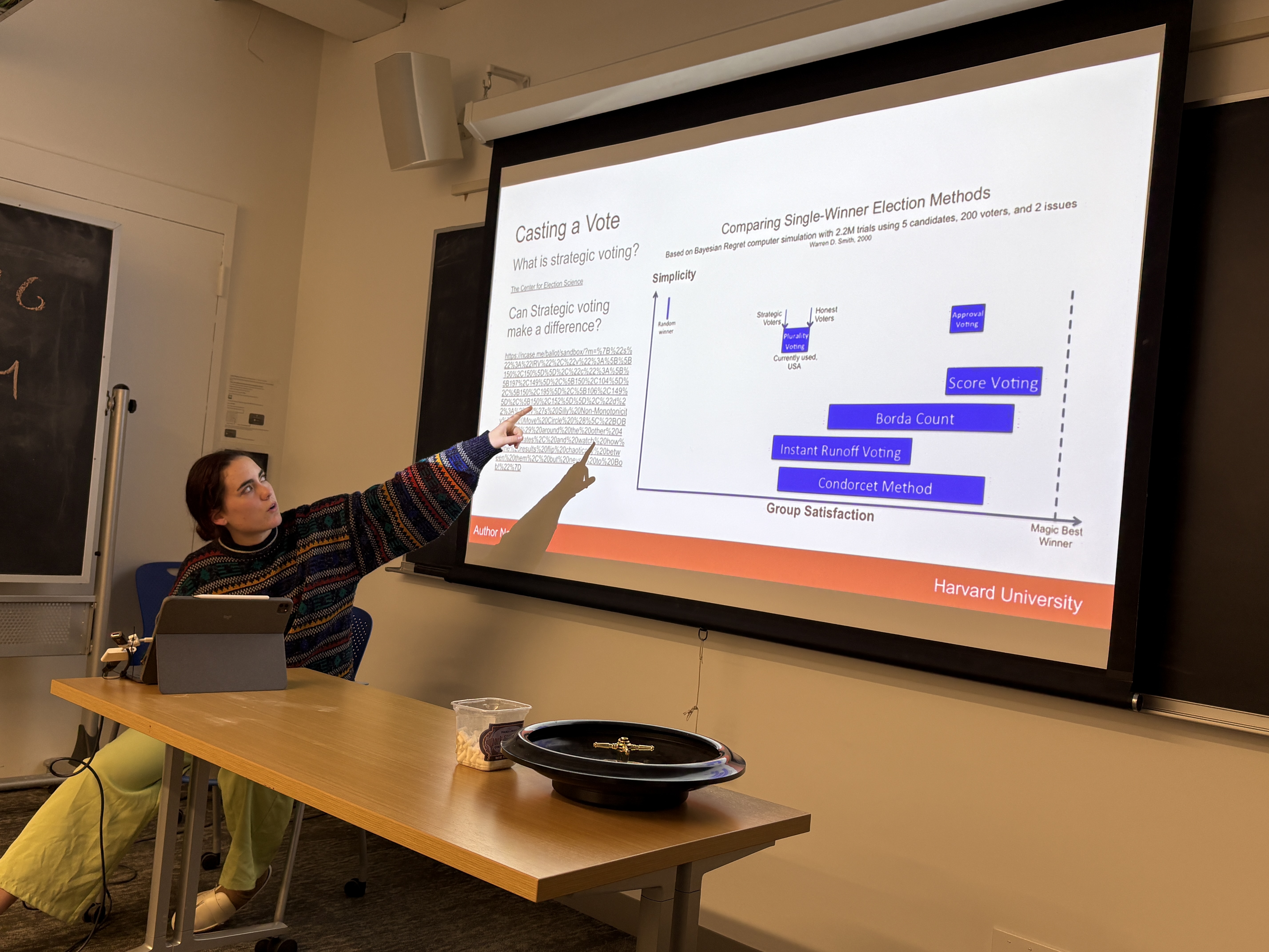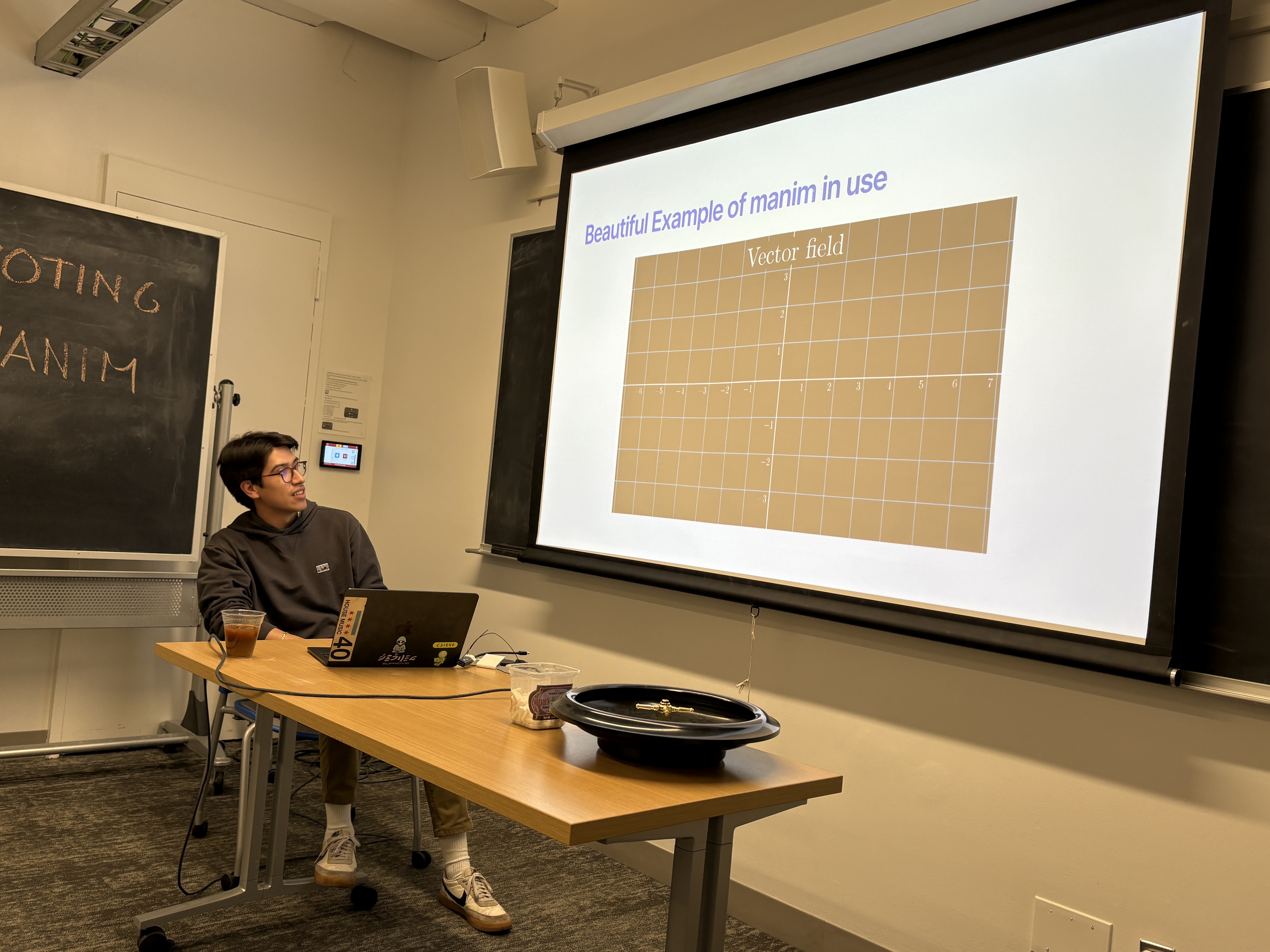 | In the 12th meeting, Hugo and Emily presented. Hugo taught us about Manim (the open source math visualization library in Python) and Emily explained us how to "Gamify the Vote" and how to visualize it using the Sankey Diagram. |