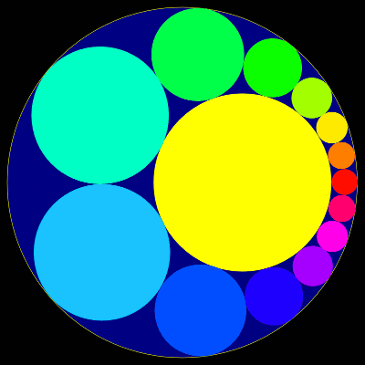 This looks a bit like a miracle at first: a chain of circles can be deformed around an other circle. The reason for this is Moebius geometry. We can find transformations in the plane which leave circles as well as tangencies between circles invariant. We therefore only have to look at a very symmetric situation, turn there things around and look at the picture with a Moebius filter.