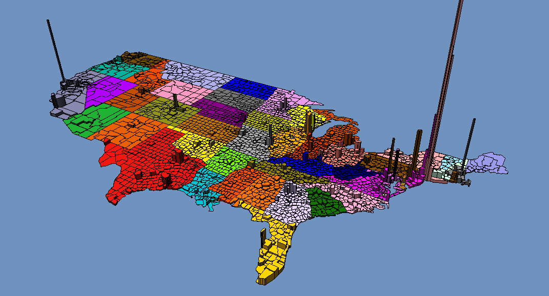 A nice picture illustrating the population density function in the US.