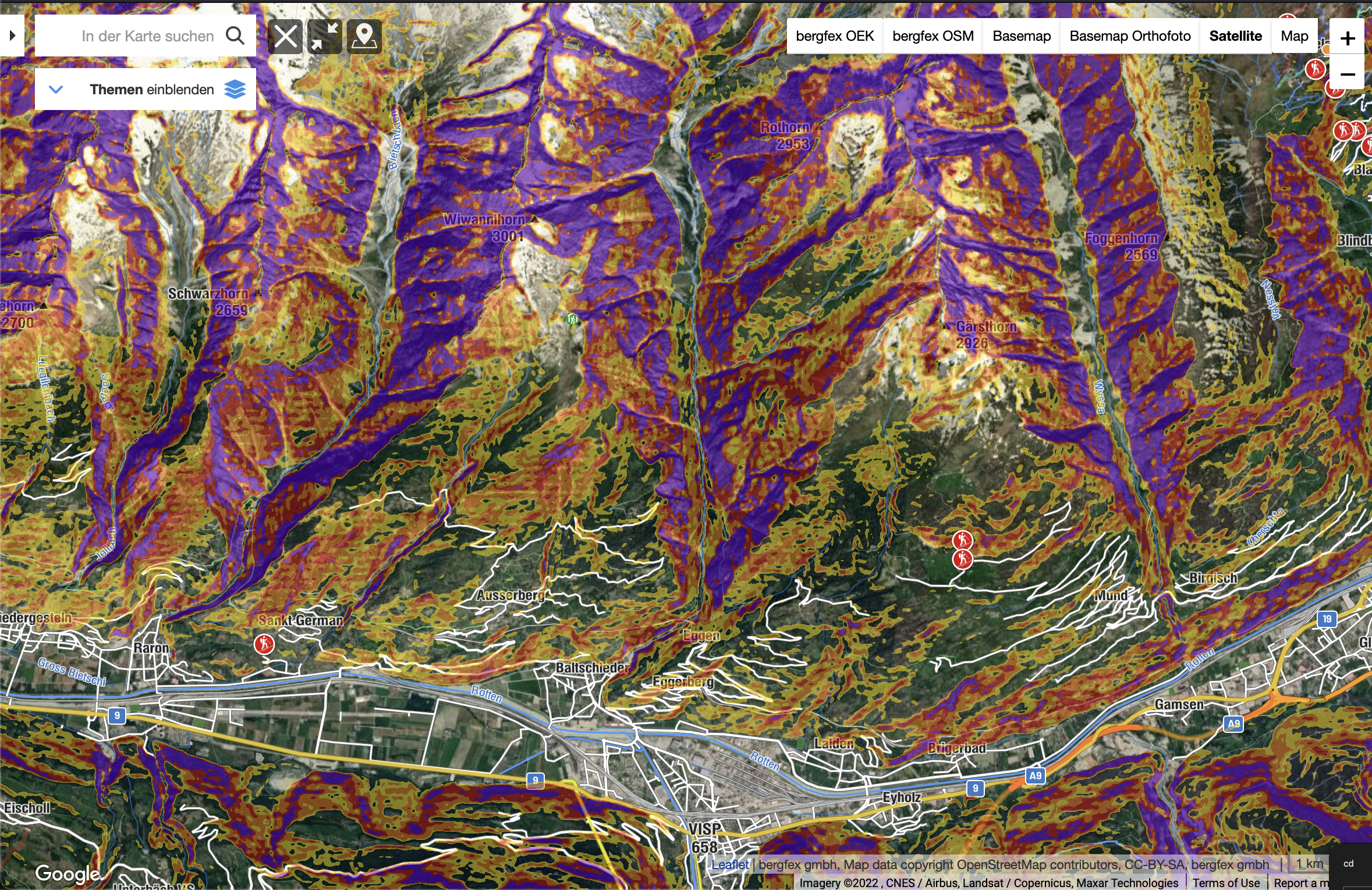 video. The blueish-purple parts are steep.