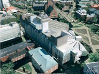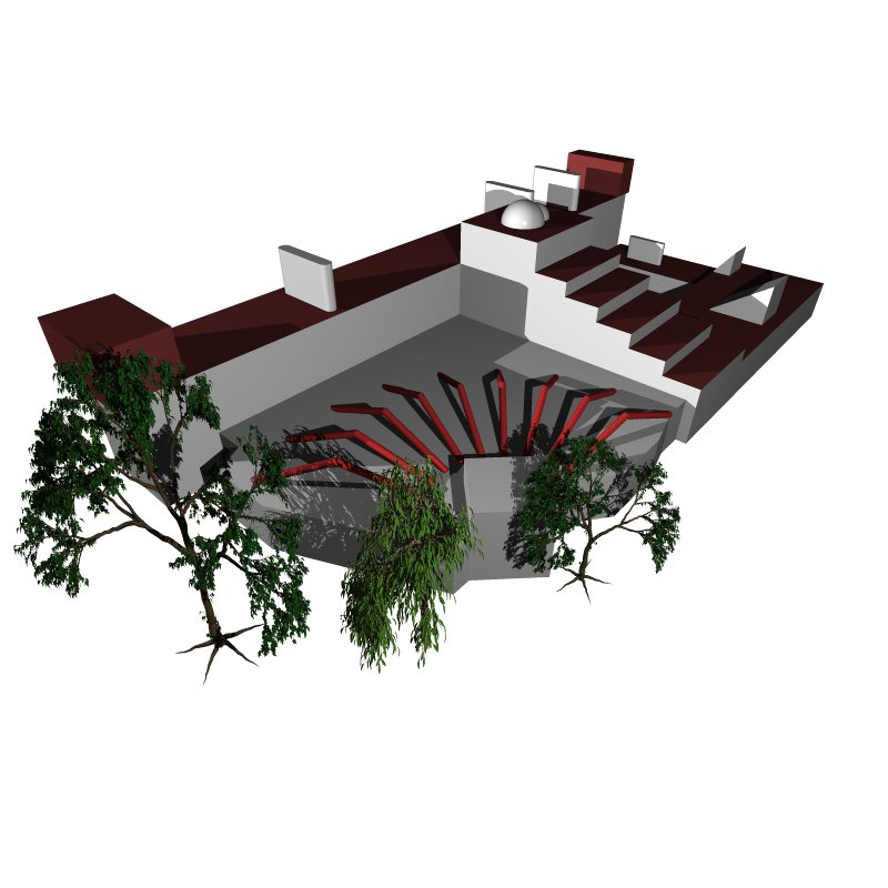 After arriving at Harvard, I scanned some pictures of the science center and wanted to build it in Povray. I worked on it an hour here an hour there. In 2001, I did not find any more time for the project. Here is science.inc and science.pov and greenhouse.inc (pic) leading to this picture. | . |