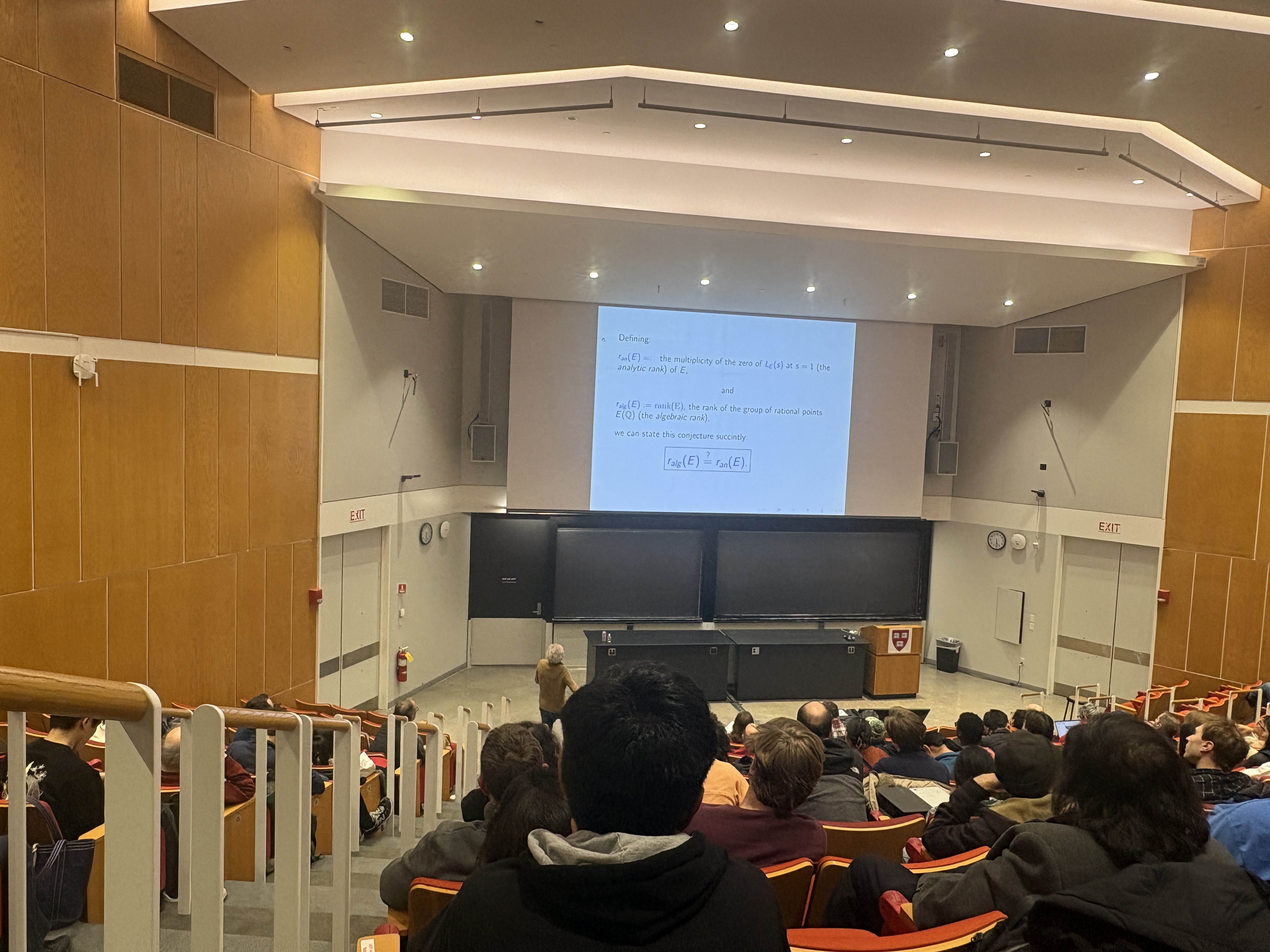 The talk was well attended. The BSD conjecture relates the order r of an elliptic curve E in an explicit
