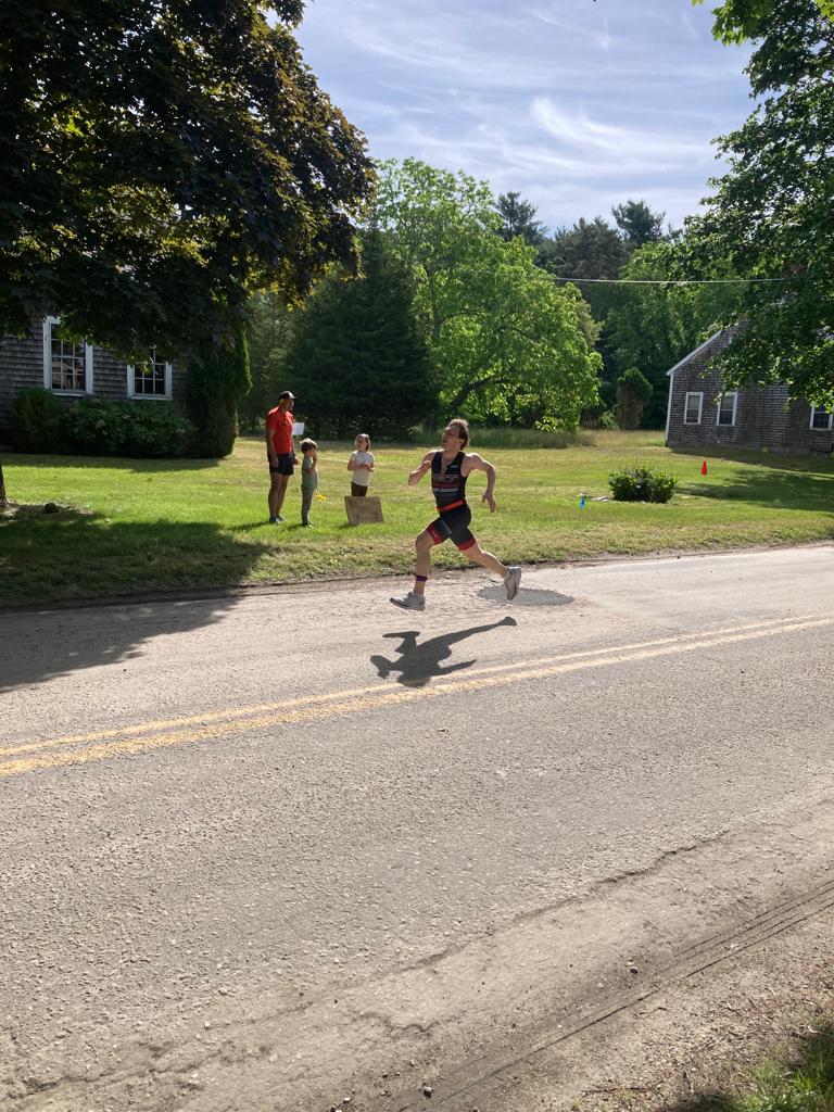 Biking in the 2022 Boston triathlon.